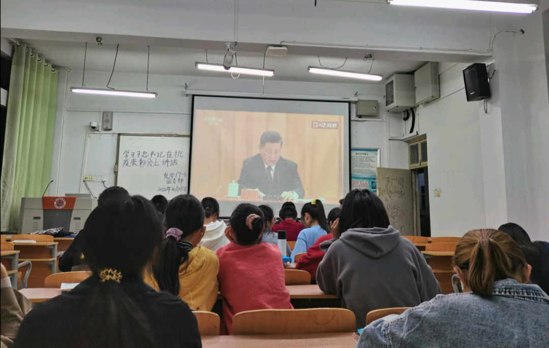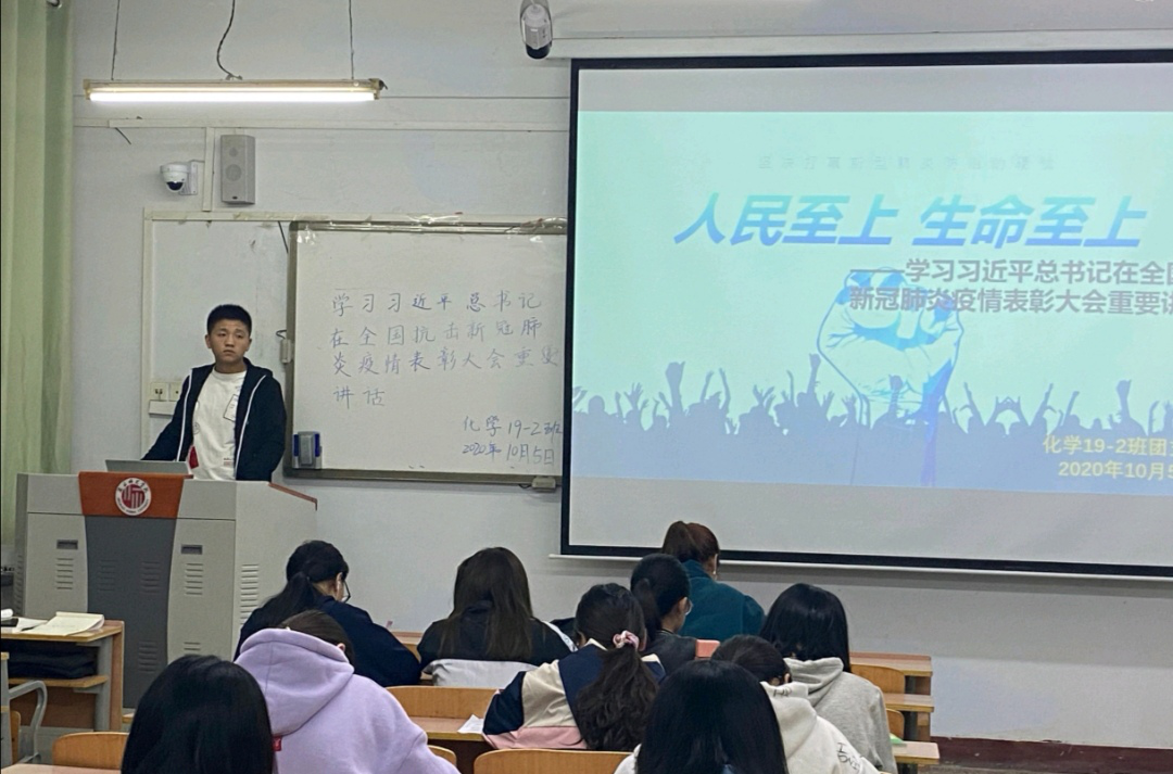 为大力弘扬伟大抗疫精神,学习中国人民和中华民族铸就的伟大抗疫精神,2020年10月5日,化学化工学院组织学习习近平总书记在全国抗击新冠肺炎疫情表彰大会上的讲话精神,化学化工学院19级全体学生参加。