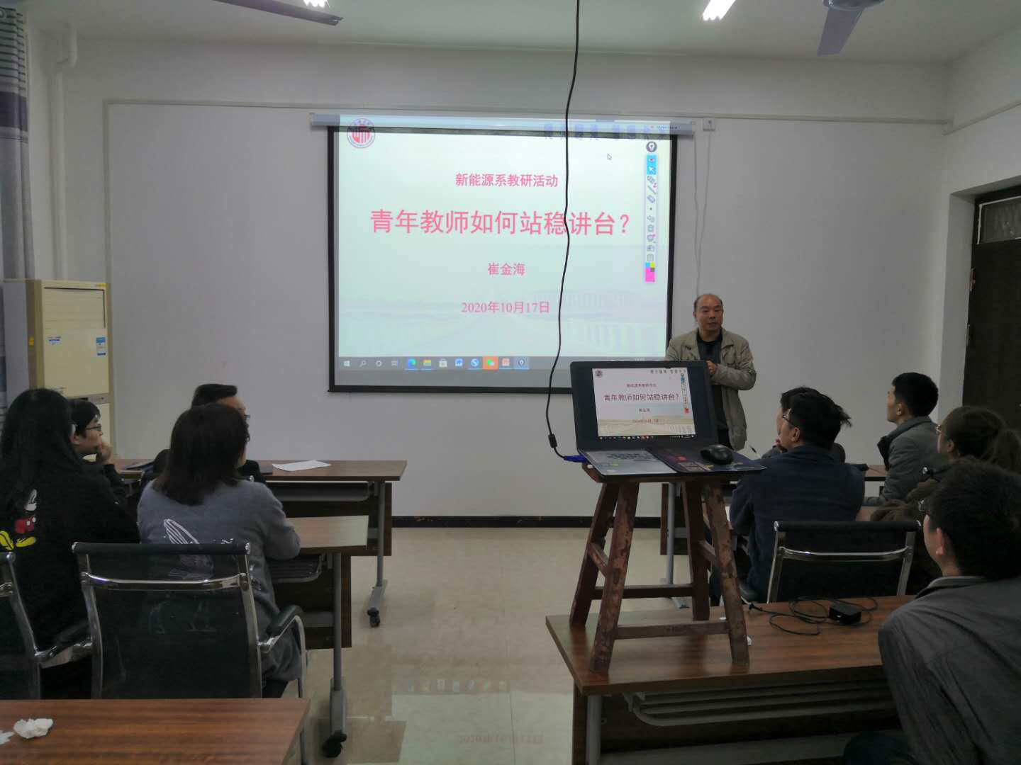 2020年10月17日,新能源系在教学楼2楼206室举行了本学期第六周的教研活动,魏伟老师针对当前本系青年教师占绝大多数的情况,拟定了《青年教师如何站稳讲台》的教研活动主题。