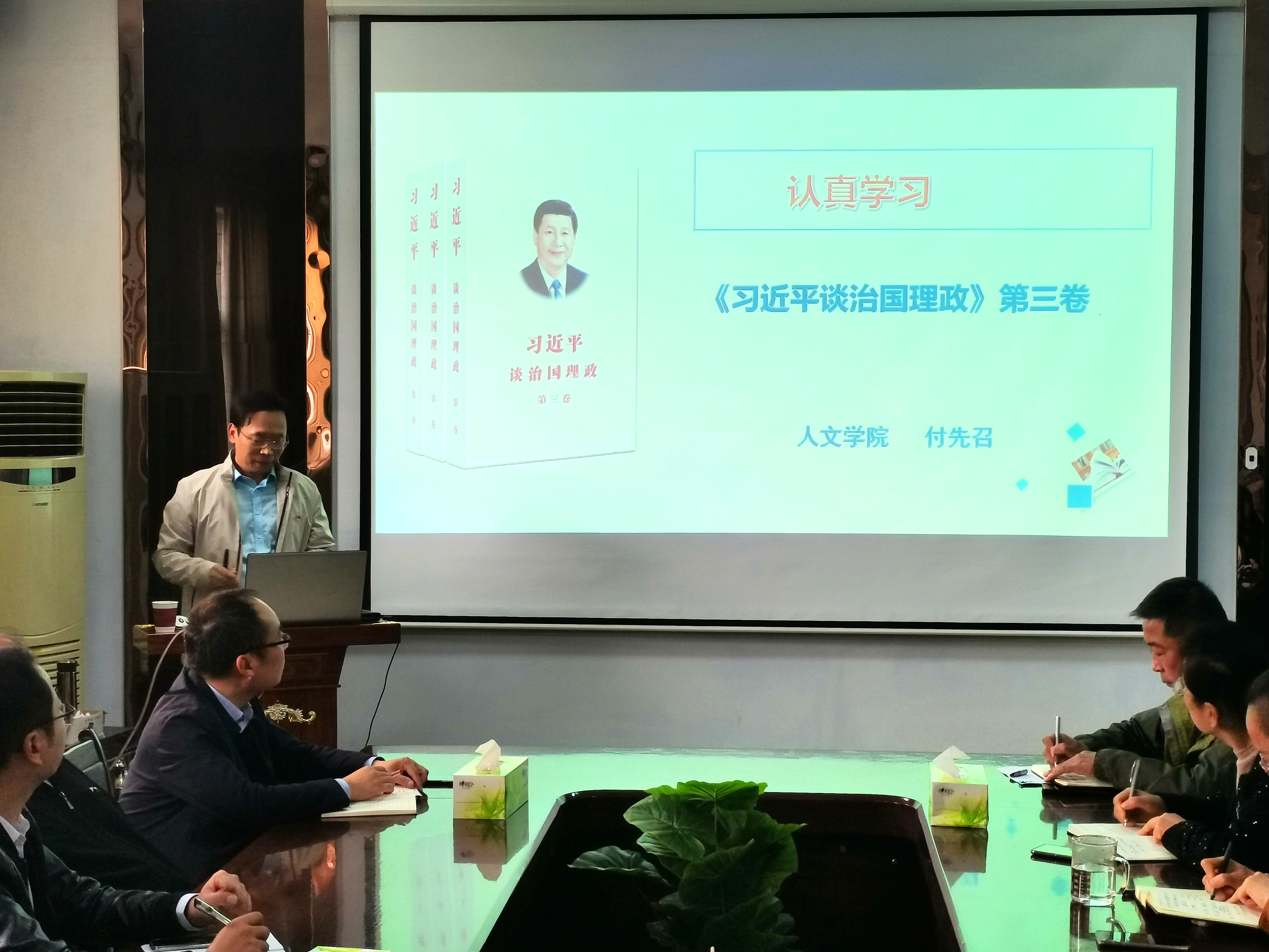 宣讲中,付召先教授分析了《习近平谈治国理政》第三卷产生的背景,深刻阐述了《习近平谈治国理政》第三卷的主要内容和创新点,指出了学习《习近平谈治国理政》第三卷的重大意义。付召先教授还建议在学习中要学原文读原著、结合“四史”学,不断把学习到的精髓融入到教学、育人中。