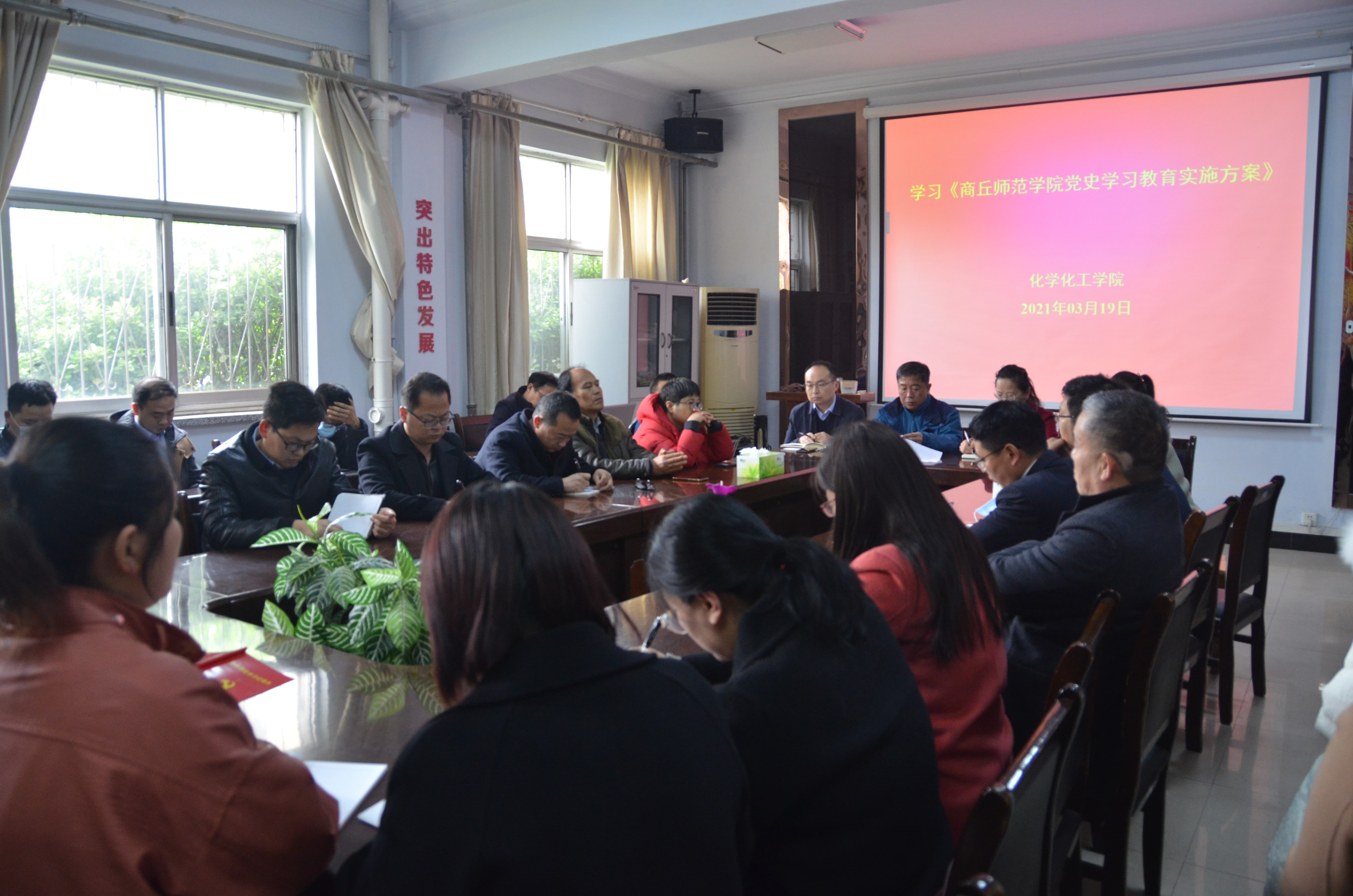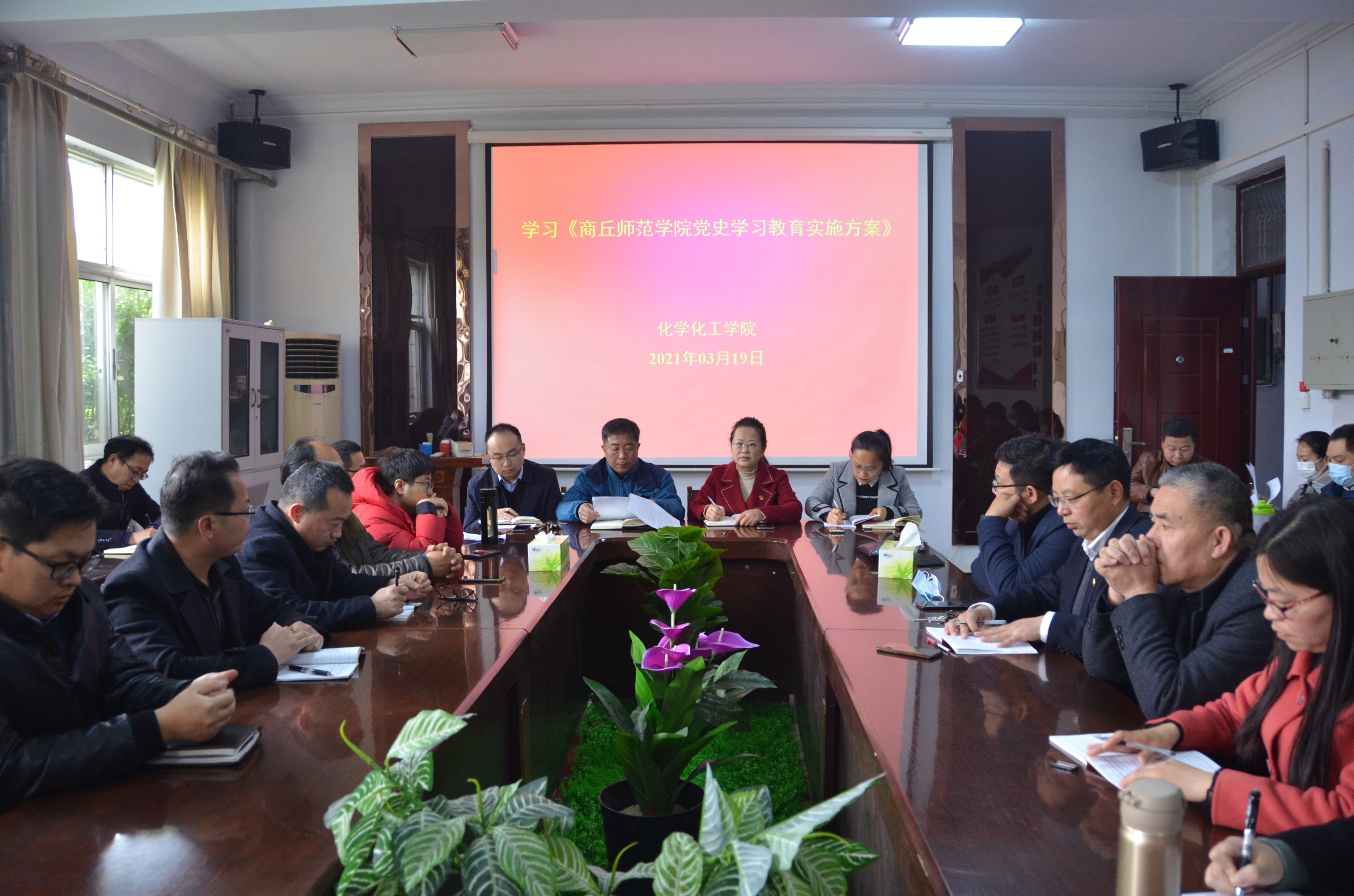 3月19日下午,化学化工学院于睢阳校区7号楼会议室组织全体教职工传达学习《永利23411集团党史学习教育实施方案》通知文件并做了动员部署。会议由院党总支书记韩忠民主持。