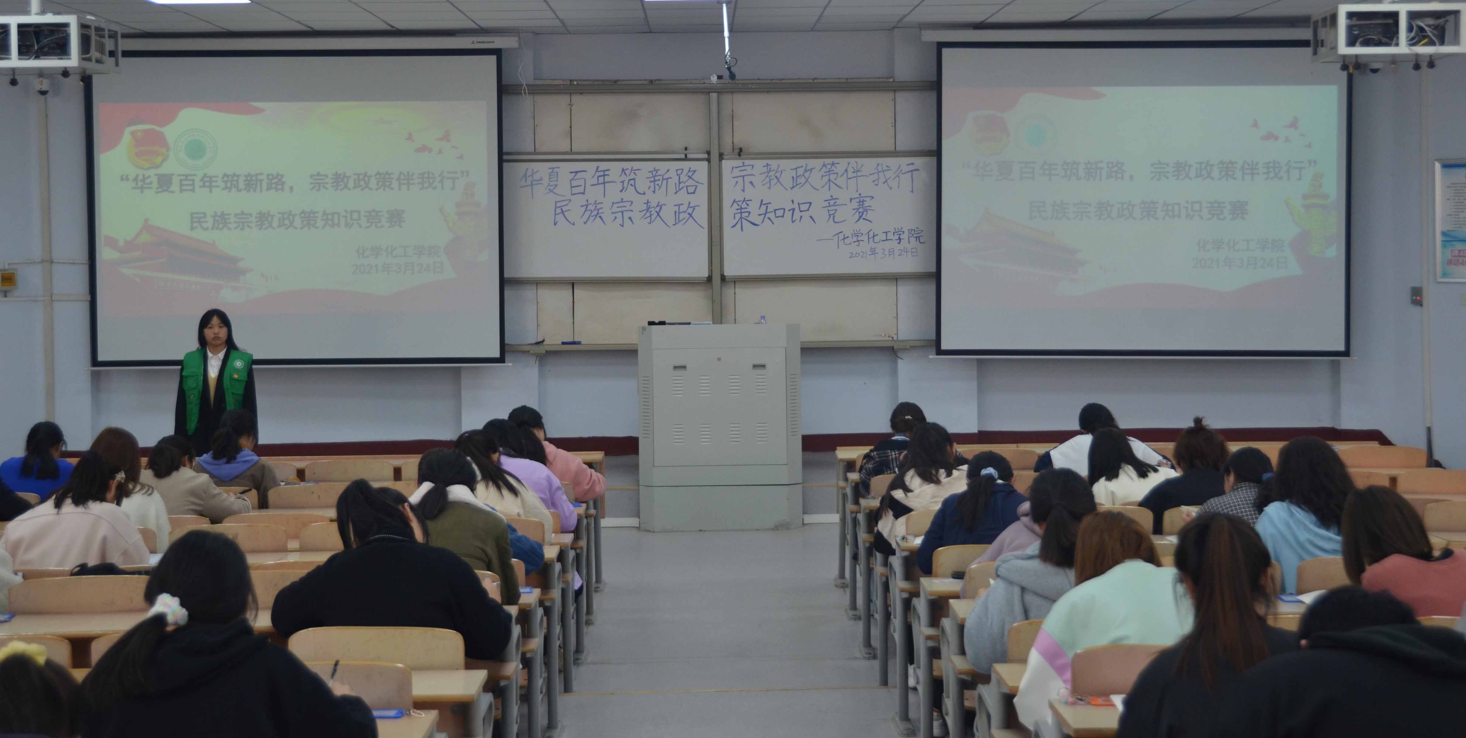 为深化学习十九大精神,巩固宗教知识学习成果,构建和谐稳定的校园环境,化学化工学院于3月24日对全体学生进行了“华夏百年筑新路,宗教政策伴我行”民族宗教政策知识竞赛测试。