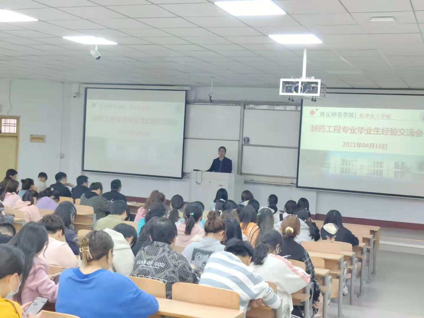 为了广泛培养大学生自主学习兴趣,提高大学生自主学习能力,做好学业目标和职业规划,2021年04月16日,制药工程专业在睢阳校区1号教学楼207教室召开了2021届制药工程专业毕业生代表学习经验分享会。分享会由制药工程系主任王涛老师主持,制药工程19-1班班主任沈仁增老师、制药工程20-1班班主任许凯老师和制药工程专业18级、19级、20级所有学生参加活动。