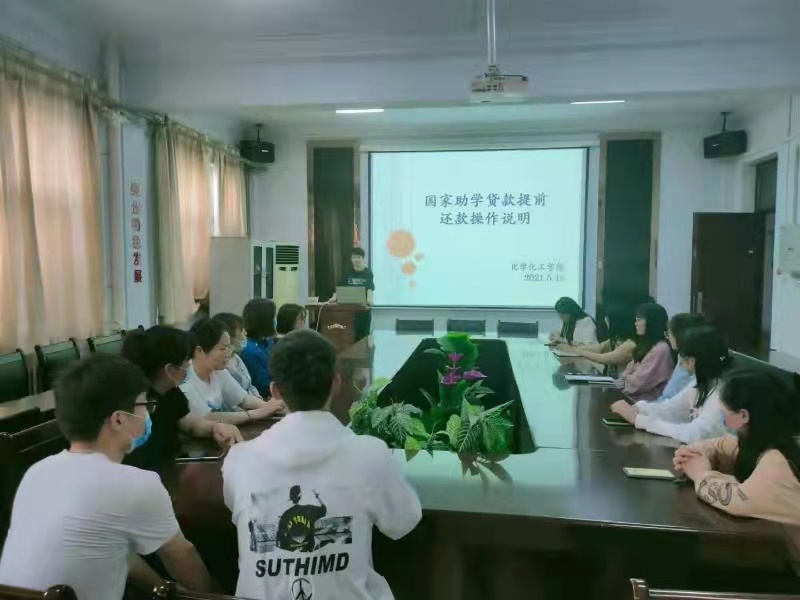为帮助贷款毕业生了解还款流程,树立诚信还款意识,2021年5月13日,化学化工学院在学院会议室召开2021届毕业生还款教育会议。会议由学院资助工作负责人史展老师主持,全体2021届贷款毕业生参加会议。