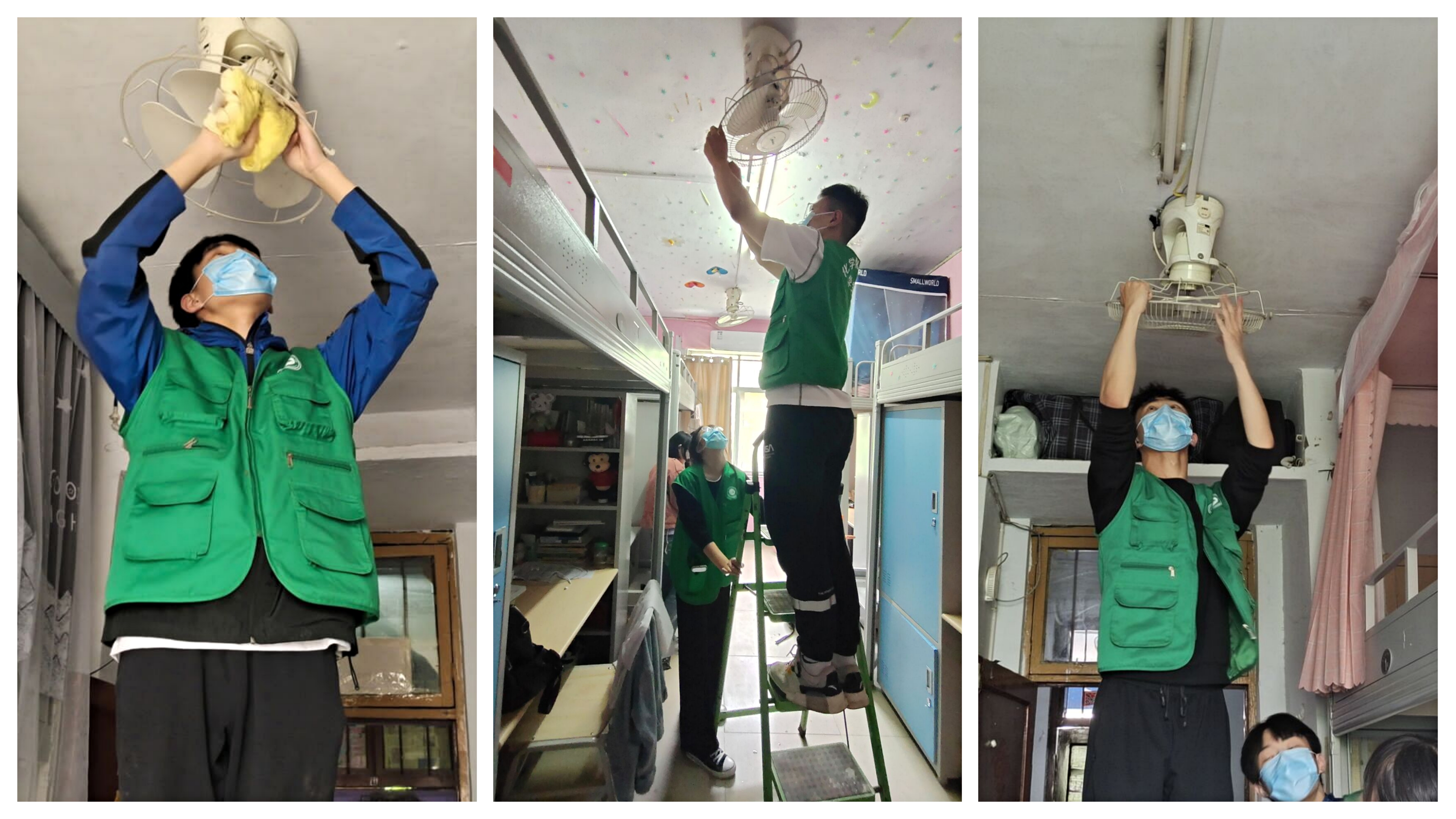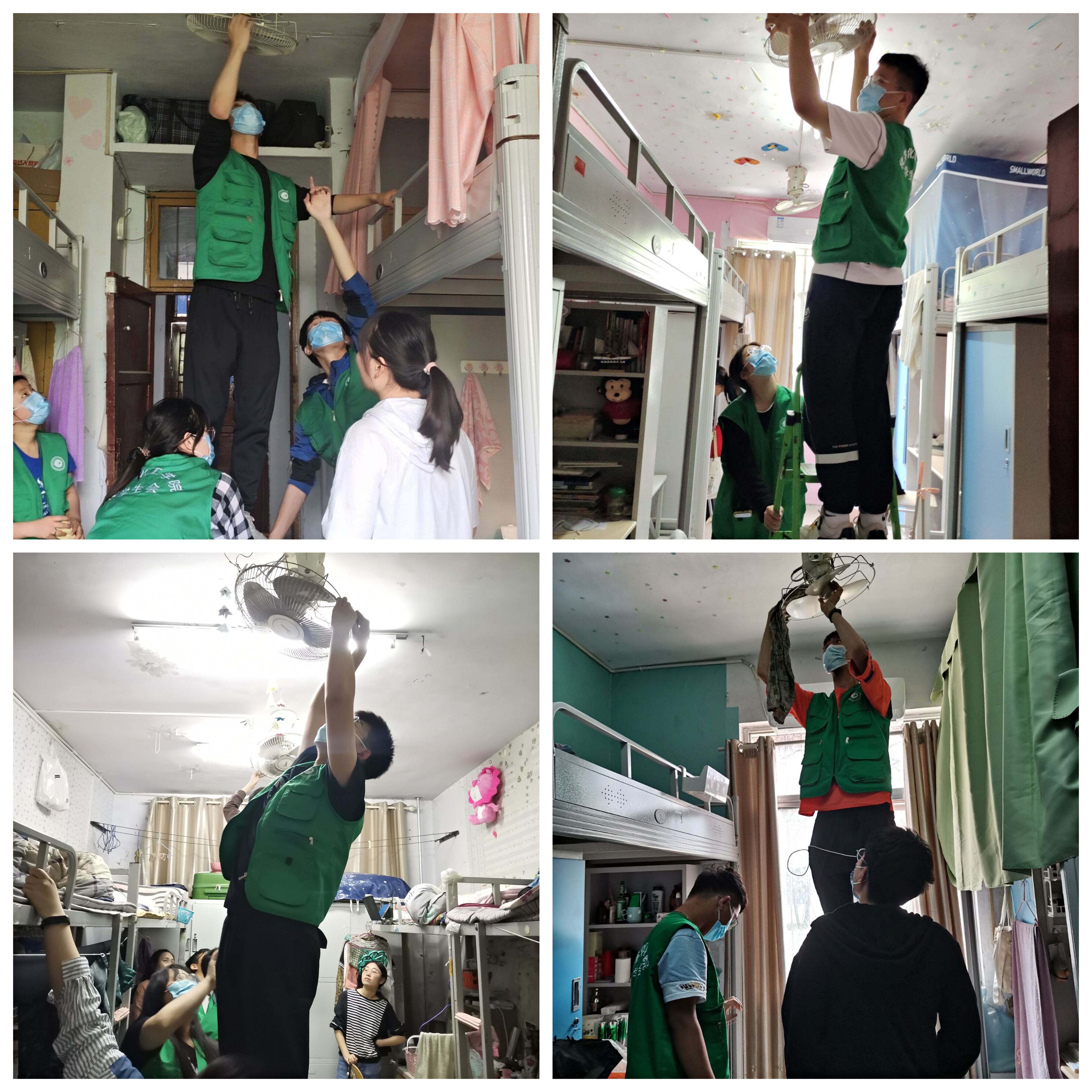 活动中,学生会全体成员在生活部的带领下,男生们搭起梯子凳子进行电扇的拆卸工作并仔细的清洗着扇叶,女生们则端来清水,将毛巾拧净,刷洗风扇外壳,将布满灰尘的风扇擦得一尘不染。经过同学们的共同努力,风扇焕然一新,为同学们送去阵阵凉风,缓解了同学们夏日里的一份燥热。作为全心全意服务于学生的组织,学生会始终坚持服务学生,在各项工作总彰显奋斗担当,贡献青春力量。