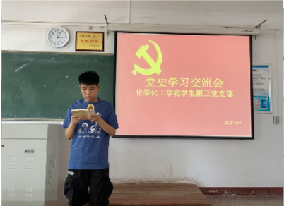 为积极响应党史学习教育政策,按照校党委宣传部要求,2021年6月4日,化学化工学院于睢阳校区1号教学楼408教室召开第十四周党史学习交流活动。本次交流活动由学生党员赵鑫俐主持,各学生党支部成员参加。