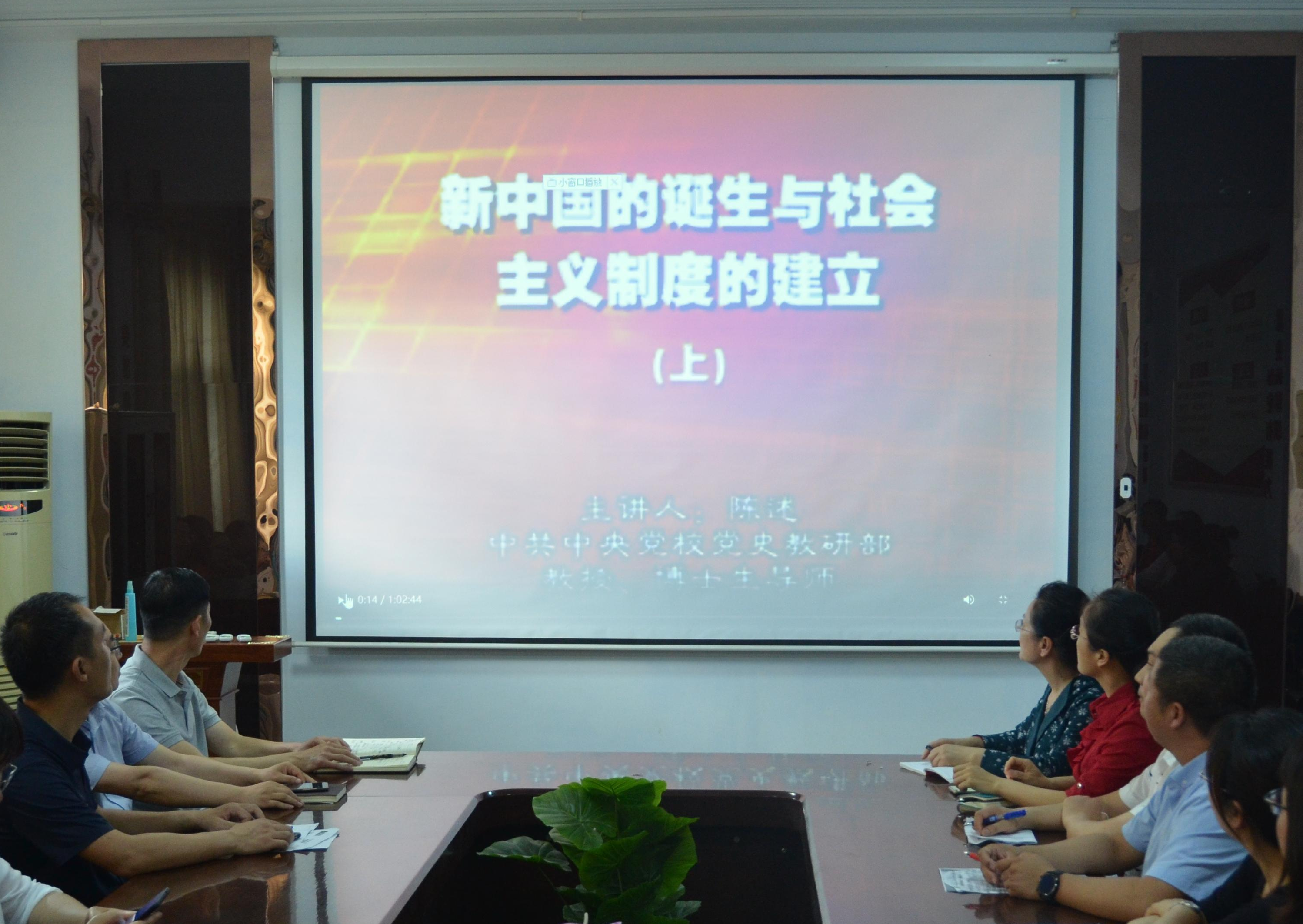 之后,集中观看了陈述博士主讲的《新中国的诞生与社会主义制度的建立》专题视频。通过学习,重温了从新中国成立到社会主义制度建立那段波澜壮阔的历史。中国共产党筚路蓝缕,励精图治,带领人民建立了新中国,并实现了从新民主主义社会到社会主义社会的转变,社会主义制度建立了起来。