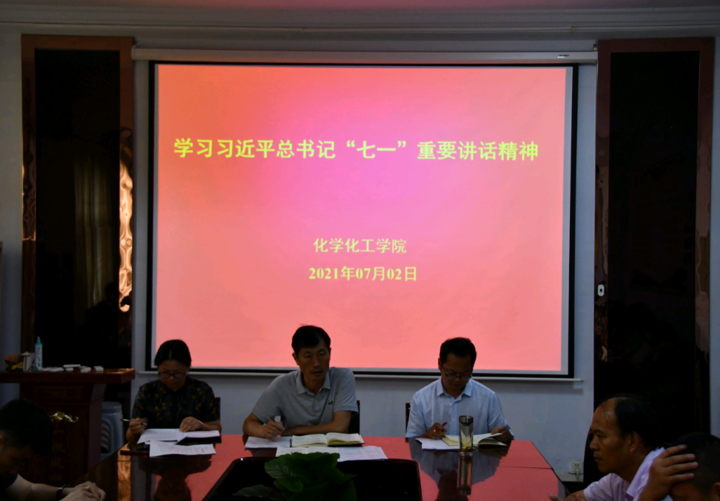 7月2日,化学化工学院于睢阳校区7号楼会议室组织开展习近平总书记“七一”重要讲话精神专题学习,化学化工学院党委书记李海涛主持,全体教职工参加。