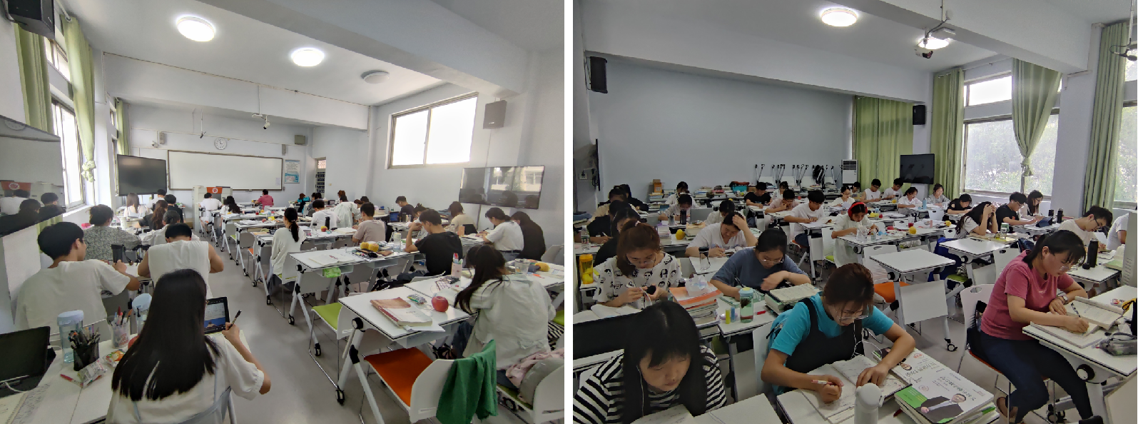 化学化工学院高度重视考研工作,学生学习兴趣浓厚,营造了良好的考研氛围,据了解今年暑假永利23411集团留校的257名考研学生依然坚持着每天“三点一线”的生活,大部分学生每天坚持6点早起背书,临近宿舍锁门回去。他们或是奋笔疾书,或是书声朗朗,或是研讨不休,但他们乐在其中。炎炎夏日,他们的坚持与汗水必定会成为校园一道亮丽的风景!