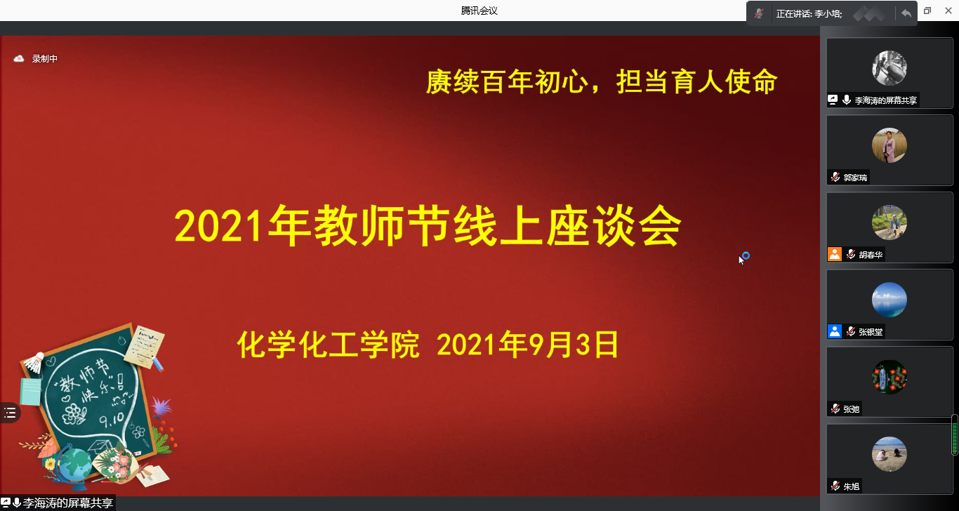 9月3日,化学化工学院召开了线上教师座谈会,学院领导班子、各基层教学组织负责人和教师代表参加,院党委书记李海涛主持座谈会。