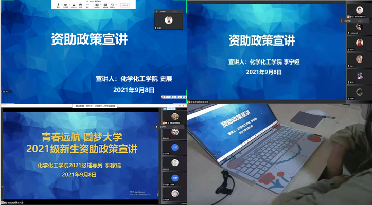 为贯彻落实高校资助政策,做好精准资助,激励家庭困难的学生克服困难、自强自立、努力成才, 9月8日至9月9日期间,化学化工学院各年级利用腾讯会议召开线上资助政策宣讲会,会议由各年级辅导员主持。