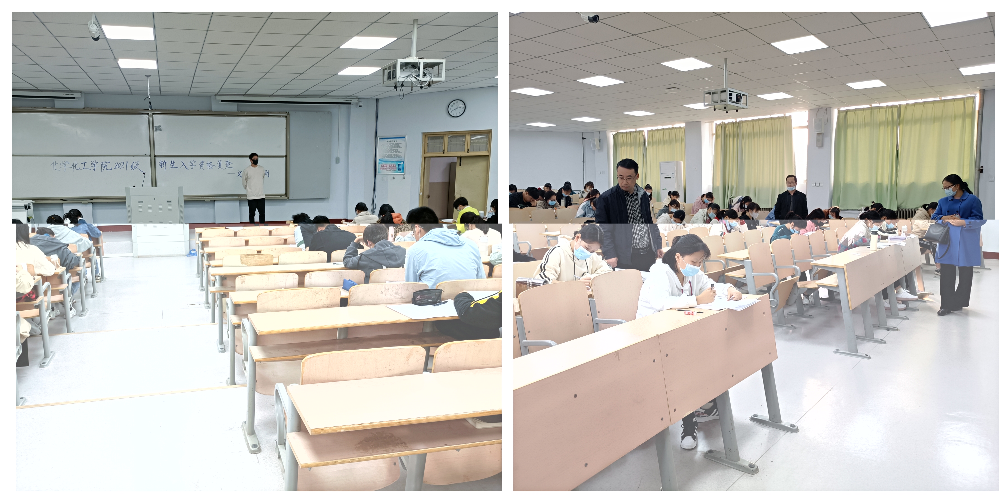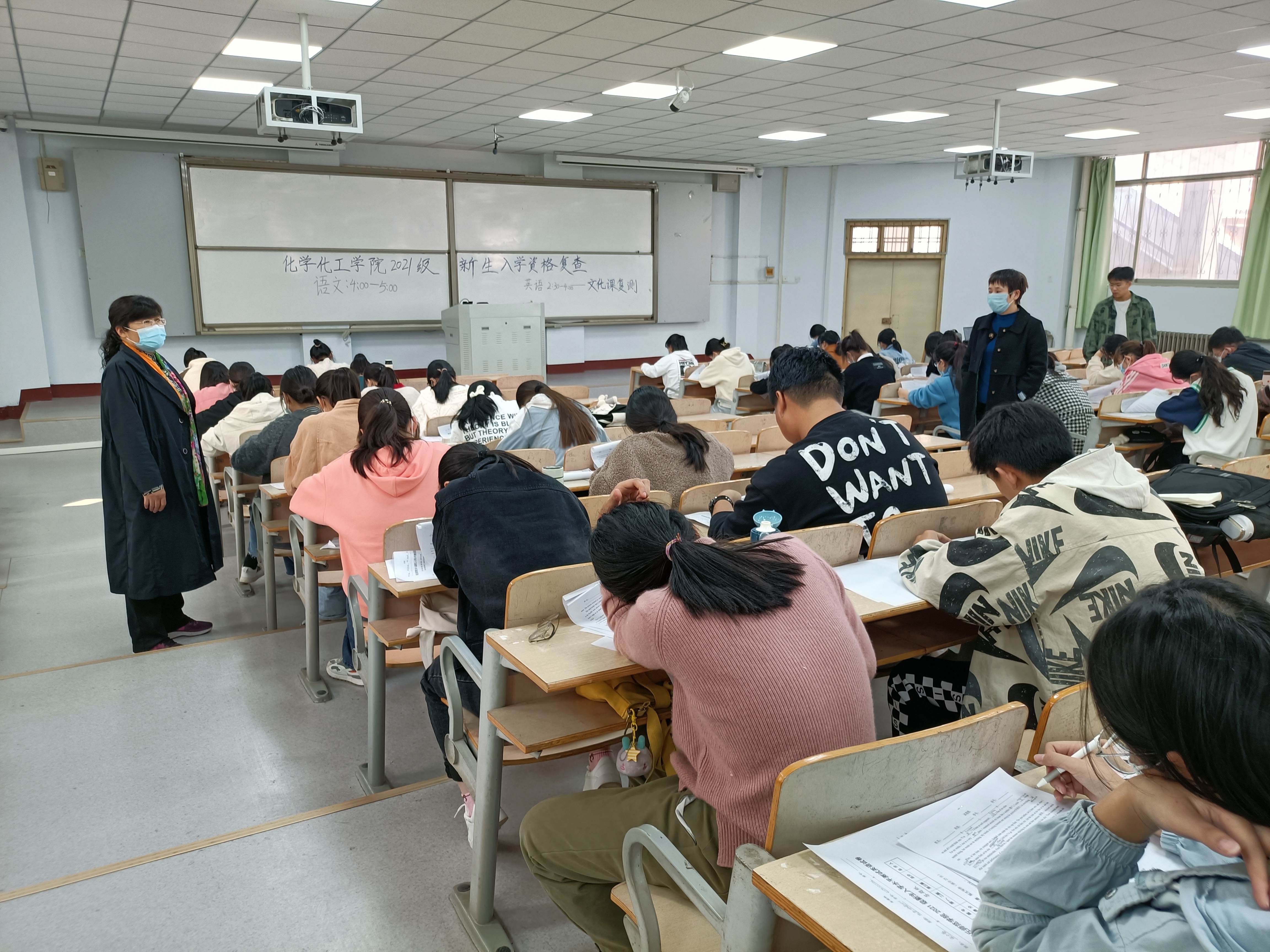 10月24号下午,化学化工学院组织全体2021级新生参加由教务处组织的文化课复测。新生文化课复测是新生入学资格复查工作中的重要组成部分,学院高度重视,成立了考试巡查小组,积极配合学校组织好新生入学文化课考试工作。期间,校督导第三组成员教务处处长韩桂玲、学生处副处长李杰深入考场进行巡视。考场内秩序井然,所有同学都认真对待此次测试。监考老师严格监考,确保此次文化课复测工作公平公正。