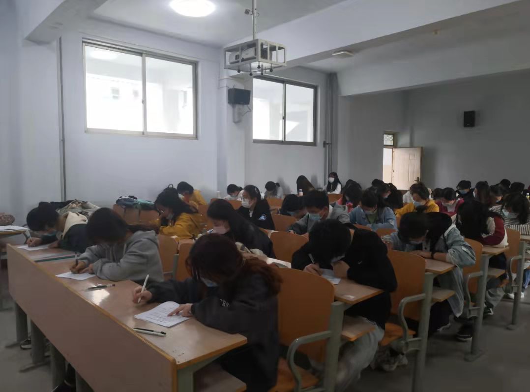 本次考试共有103名同学参加,以习近平新时代中国特色社会主义思想、党的十九大精神、党的基本理论、基本路线等为考试依据。同们奋笔疾书,根据自己在培训期间学习到的知识认真审题,细心作答。考试中,每位考生认真答题,严格遵守考场纪律,诚信应考。