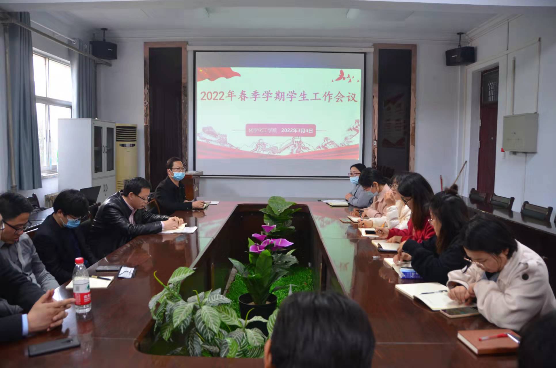3月4日下午,化学化工学院于睢阳校区7号楼会议室召开“2022年春季学期学生工作会议”,参加人员有院党委副书记张颜梅、副院长王涛、全体班主任。
