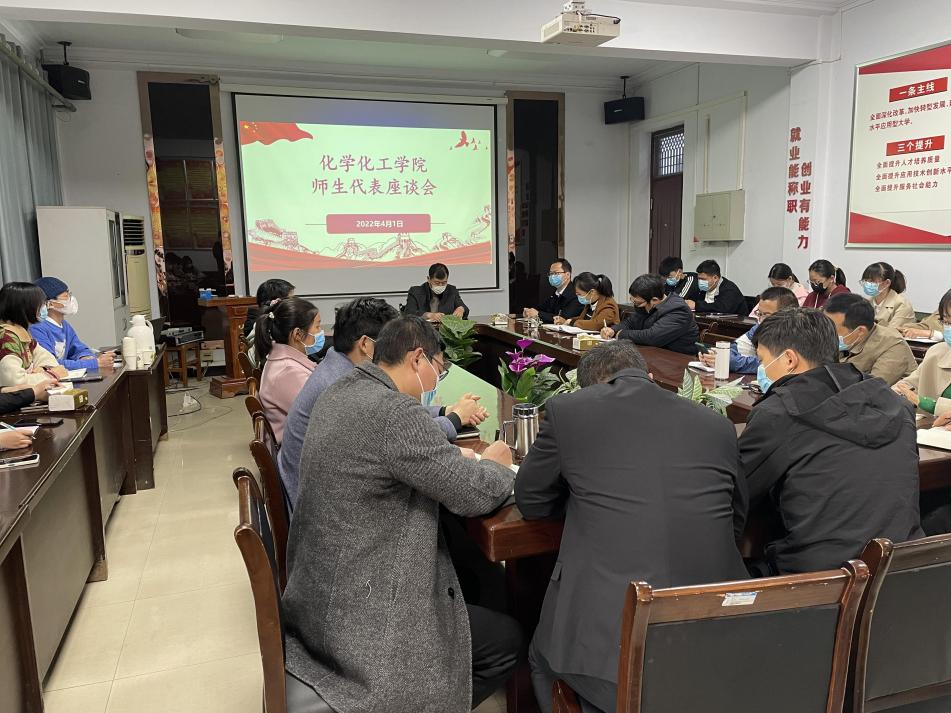4月1日下午,化学化工学院在7号楼会议室召开师生代表座谈会,院领导班子、教师代表、学生代表以及全体辅导员参会,会议由党委书记李海涛主持。