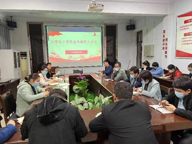 4月29日下午,化学化工学院通过线上线下相结合的方式举行全体教职工会议,会议由党委书记李海涛主持。