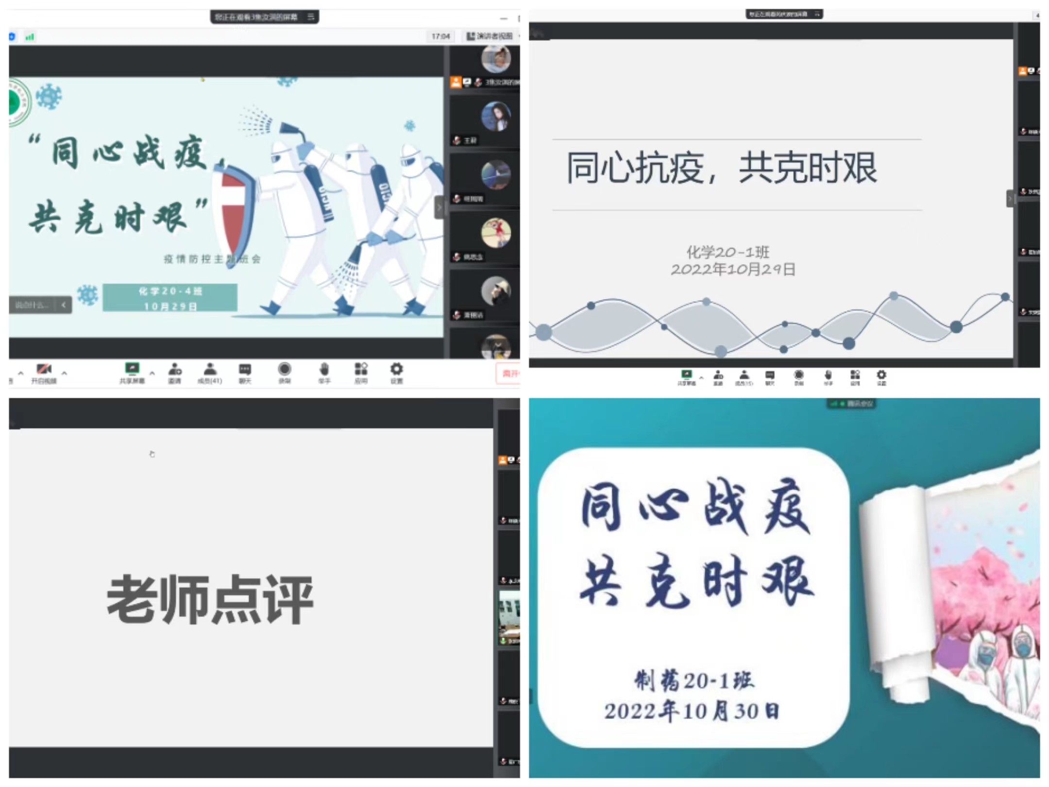 此次疫情防控主题班会,不仅让老师更加深入地了解目前学生的学习、生活和思想状况,加强了疫情期间的学生管理,更在一定程度上缓解了同学们疫情下焦虑恐慌的情绪,以理性平和、积极向上的健康心态面对在校的学习、生活、工作等。