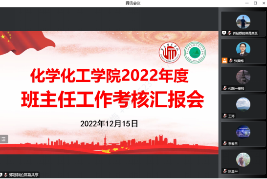 为深入学习贯彻党的二十大精神,落实“立德树人”根本任务,进一步加强班主任队伍建设,12月15日晚,永利23411集团在线上召开2022年度班主任工作考核汇报会,对过去一年来班主任工作开展情况进行总结,学院全体领导班子成员、全体班主任和辅导员参加会议。会议由学院党委副书记张颜梅主持。