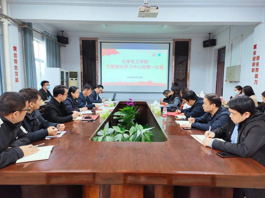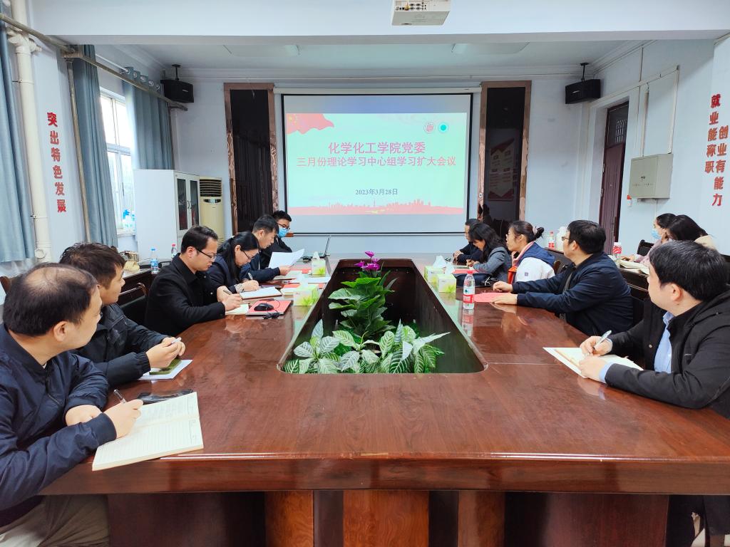 3月28日,化学化工学院党委召开了理论学习中心组学习(扩大)会议,专题学习全国两会精神和政府工作报告,院领导班子成员、各平台负责人、基层教学组织负责人、教学办、全体辅导员参会。会议由院党委书记李海涛主持。