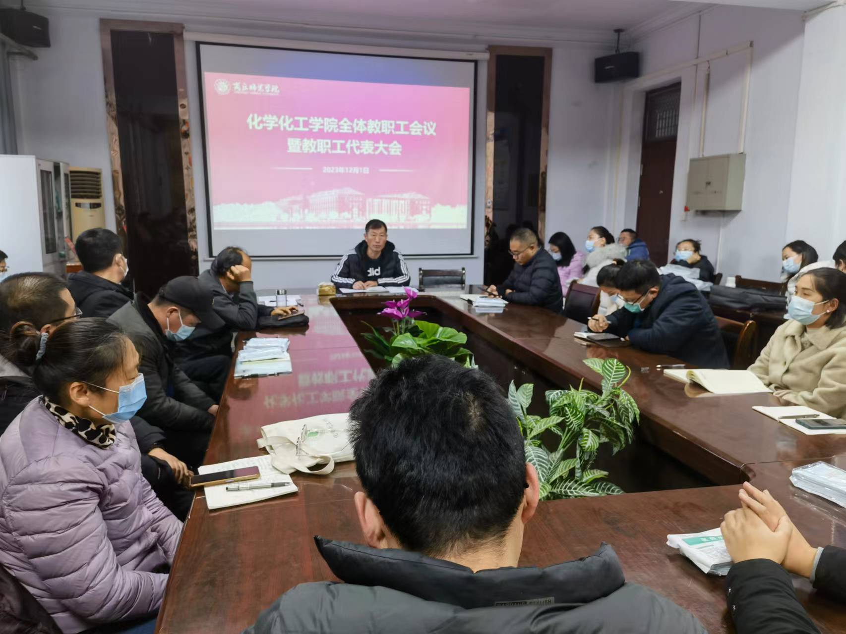 为进一步加强民主政治建设,不断调动教职工参与民主决策、民主管理和民主监督的积极性,12月1日下午,化学化工学院在7号楼104会议室召开了全体教职工会议暨教职工代表大会。学院全体教职工参加了会议,会议由学院党委书记兼工会主席李海涛主持。