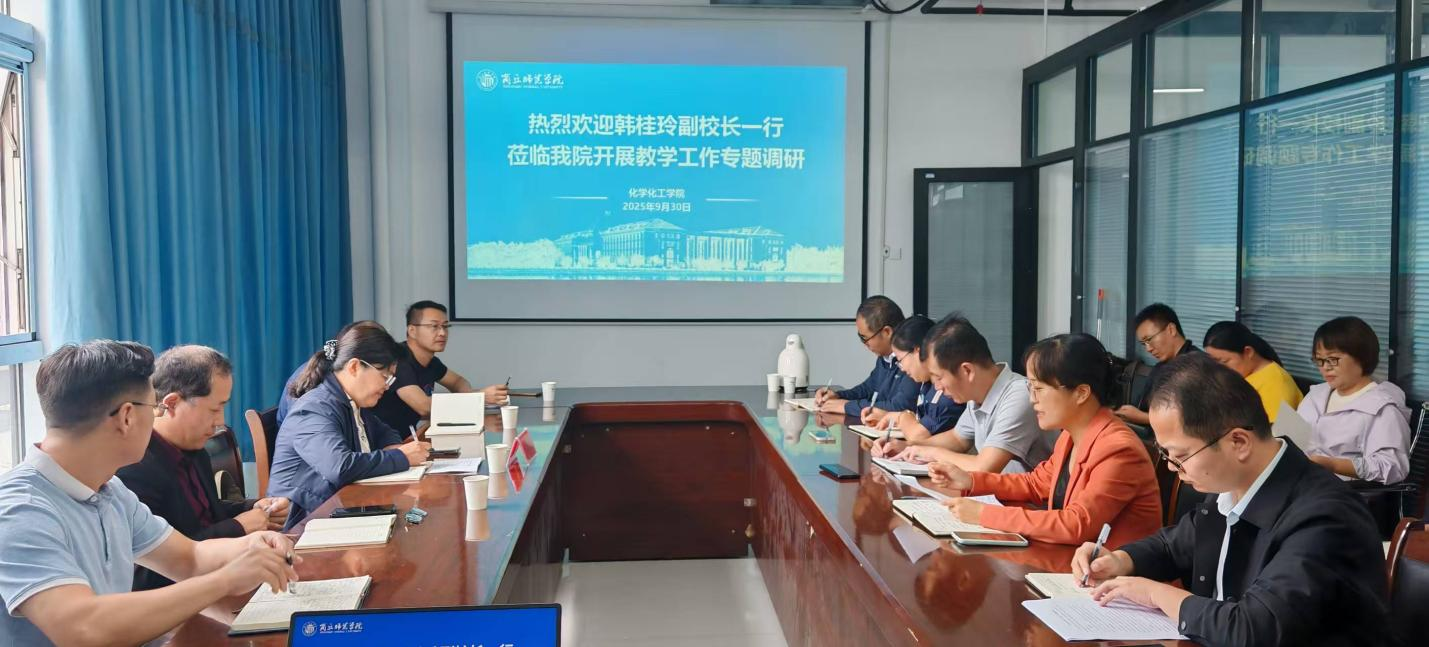 2025年9月30日,副校长韩桂玲带领教务处、教学评价与教师发展中心部门负责人一行5人深入化学化工学院开展教学工作专题调研。学院领导班子成员、基层教学组织负责人、骨干教师代表以及教学办人员参加了会议,调研会议在工科实训大楼B308会议室进行。
