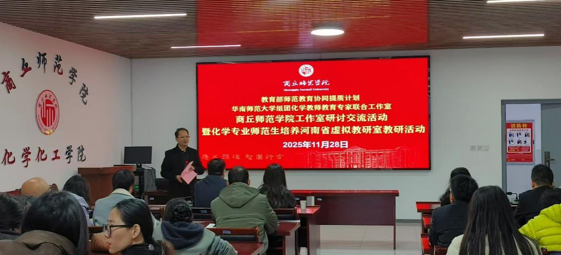 为深化化学专业师范生培养模式改革,推动教师教育协同创新,11月28日,化学专业师范生培养河南省虚拟教研室举行教研活动。本次活动邀请华南师范大学钱扬义教授,商丘市基础教育研究中心李文静老师,商丘市多所中学一线教育名师及化学系老师共同参与。活动由副院长王涛主持。