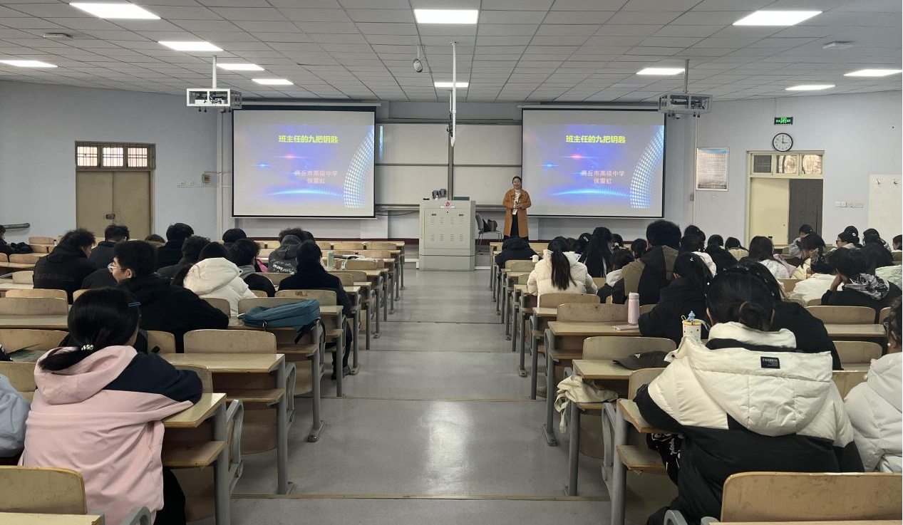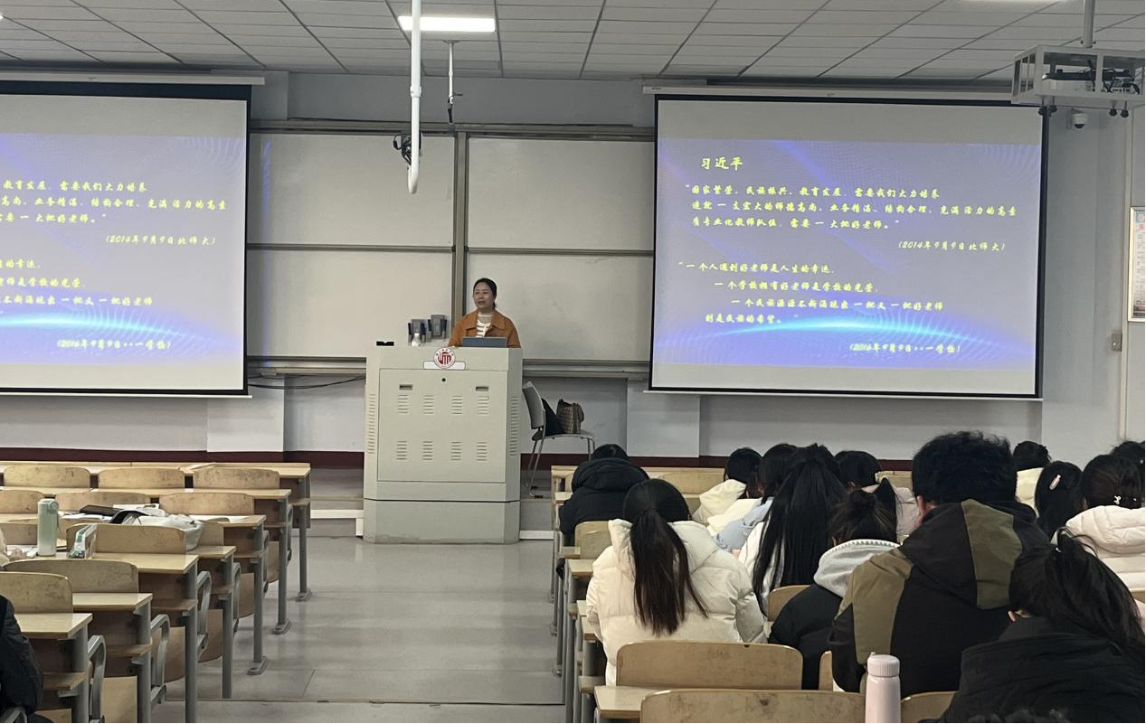 为进一步提升师范生的专业素养和班级管理能力,稳步推进“人工智能+”师范生成长工作坊的系列主题活动,学院于12月5日在1号教学楼208教室举办了班级管理工作专题讲座。此次讲座由工作坊校内坊主祝艳芳老师主持,商丘市高级中学侯震虹老师讲授,2023级全体化学师范生参加。