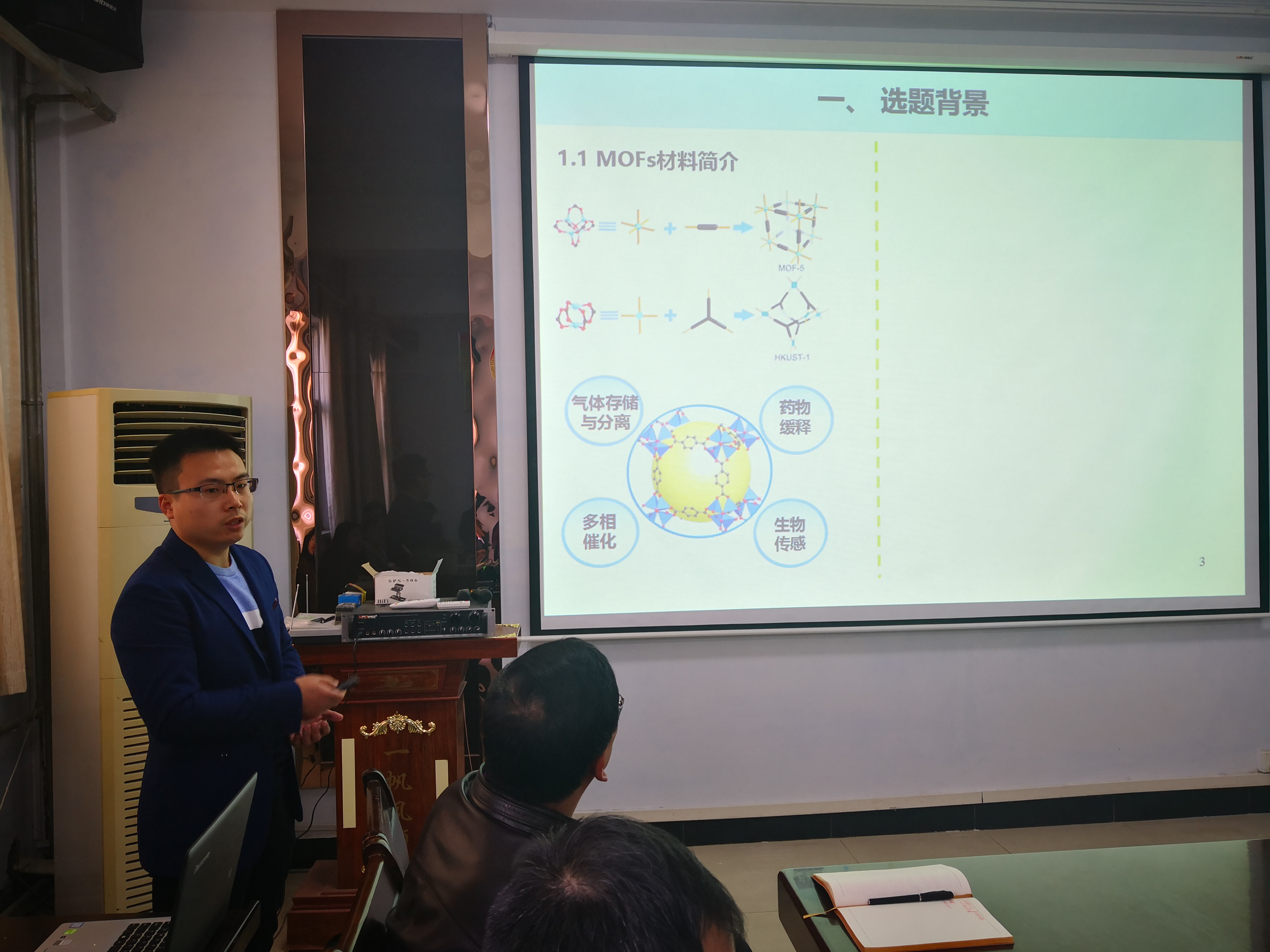张建伟博士向大家汇报了读博期间的主要科研工作,即高稳定性三核簇基MOFs材料的可控制备和性能调控,通过晶体结构与性能之间的探究,在气体存储与分离研究领域,建立了多种有效合成策略来调控晶体结构,并得到了一系列研究成果。目前,取得的部分重要研究成果已整理成6篇文章,并以第一作者发表在国际期刊上:Chem. Commun.Chem. Eur. J.Cryst. Growth Des.Dalton Trans.CrystEngComm最后,现场教师和张建伟博士就MOFs材料的合成、结构表征以及相关动态气体分离的改进方案进行了深入的交流。