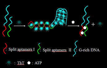图1富G分裂适配体-ThT荧光检测ATP示意图