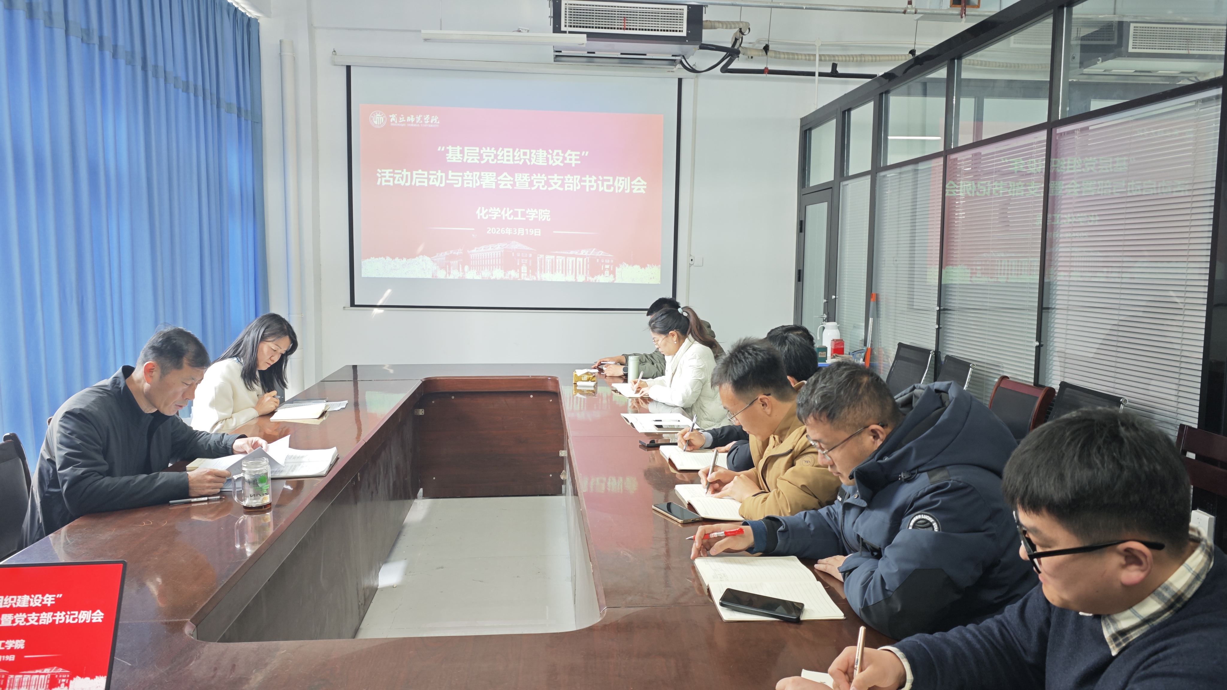 3月19日上午,永利23411集团召开“基层党组织建设年”活动推进会暨党支部书记例会,对年度基层党建重点工作进行再动员、再部署。学院党委书记李海涛、副书记刘璐及各党支部书记参加会议。