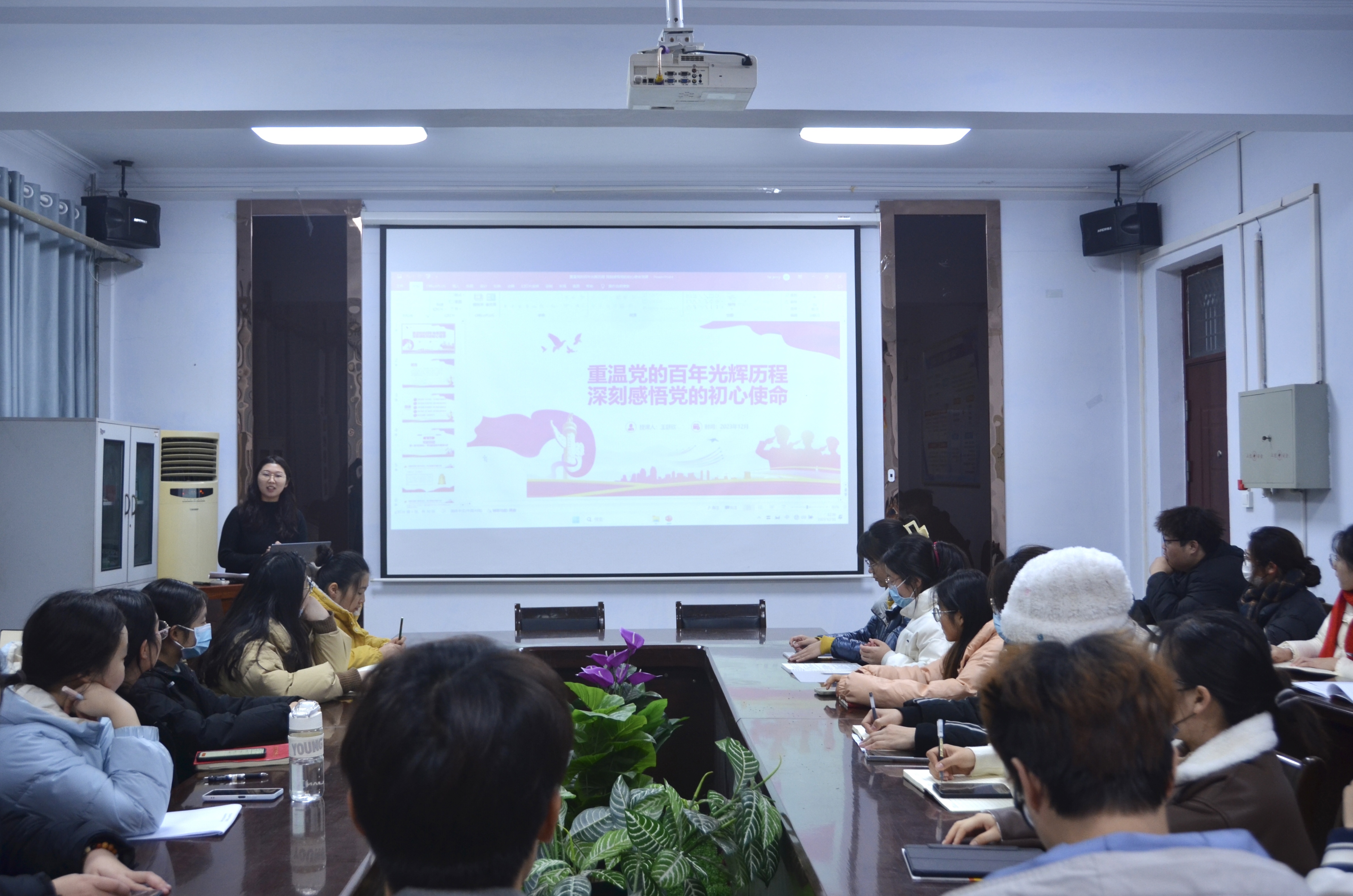 为落实分党校预备党员的培训制度,12月11日中午,化学化工学院党委于在七号楼会议室开展了预备党员中期第一次集中培训,本次培训围绕“重温党的百年光辉历程 深刻感悟党的初心使命”主题进行展开。由王舒欣授课,全体预备党员参加。