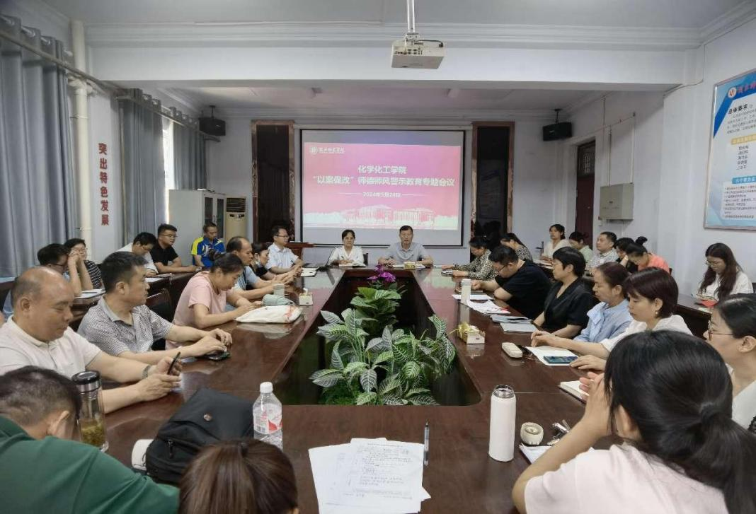 为进一步加强教师队伍师德师风建设,提升教育教学质量,积极响应教育部关于加强师德师风建设的号召。5月24日下午,化学化工学院在学院会议室召开“以案促改”师德师风警示教育专题会议。会议由党委书记李海涛主持,全体教职工参加会议。