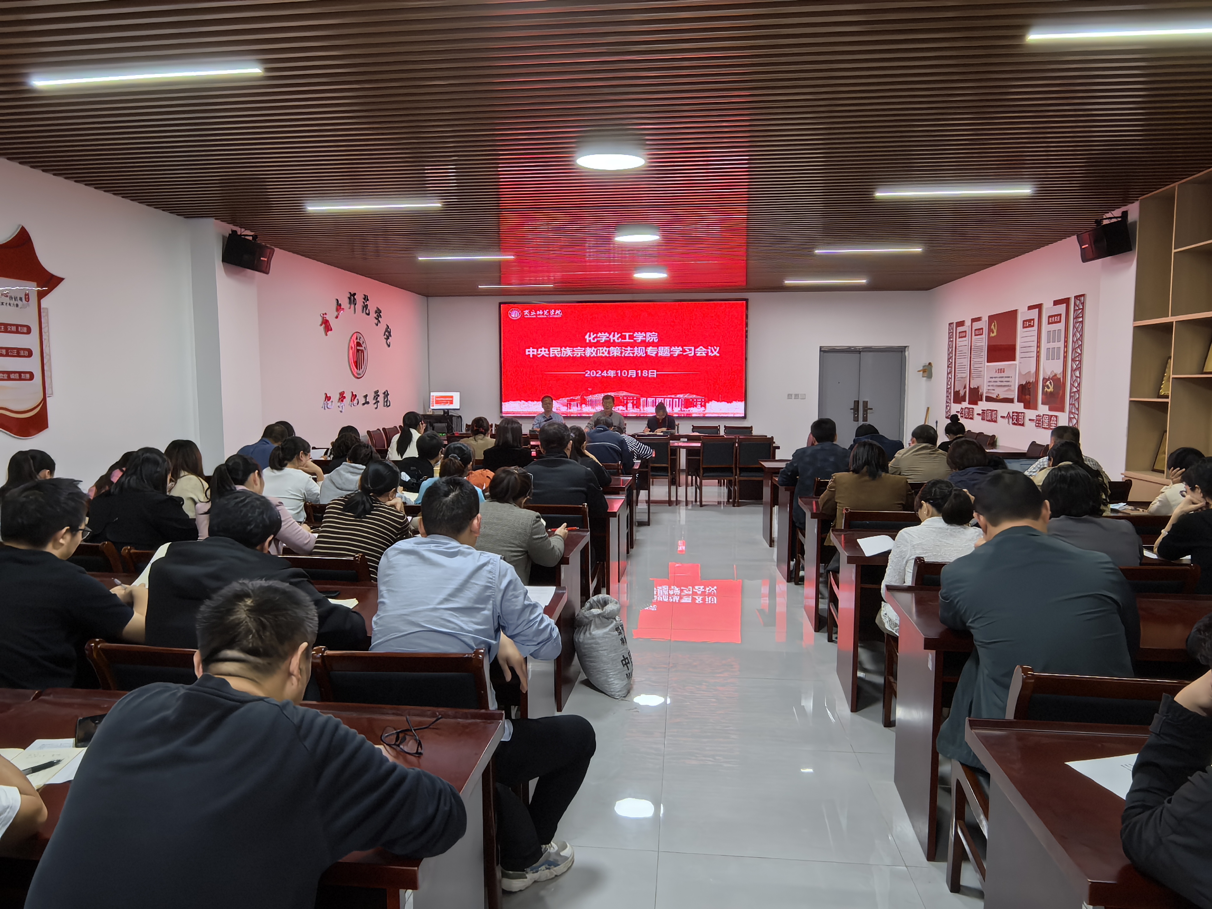 10月19日,化学化工学院在工科实训楼B309会议室召开中央民族宗教政策法规学习会议暨铸牢中华民族共同体意识主题教育。学院领导班子成员和全体教职工参加会议,此次会议由党委书记李海涛主持。