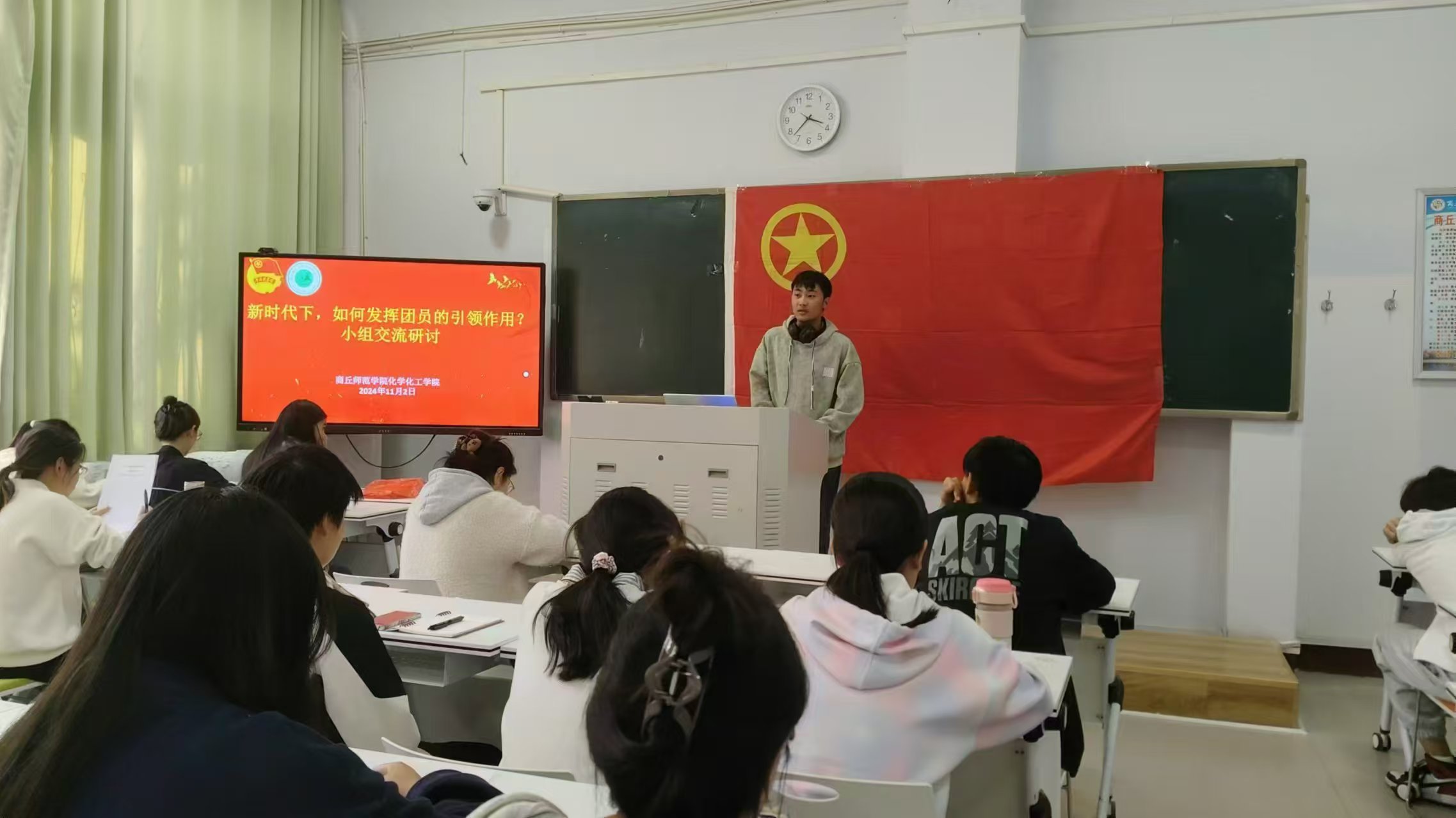 11月2日,化学化工学院第十期“青年马克思主义者”培训班举行了以“新时代下,如何发挥团员的示范引领作用”为主题的交流研讨活动。在活动中,各组员积极发言,深入探讨了在新时代背景下,团员应如何以实际行动展现先进性。