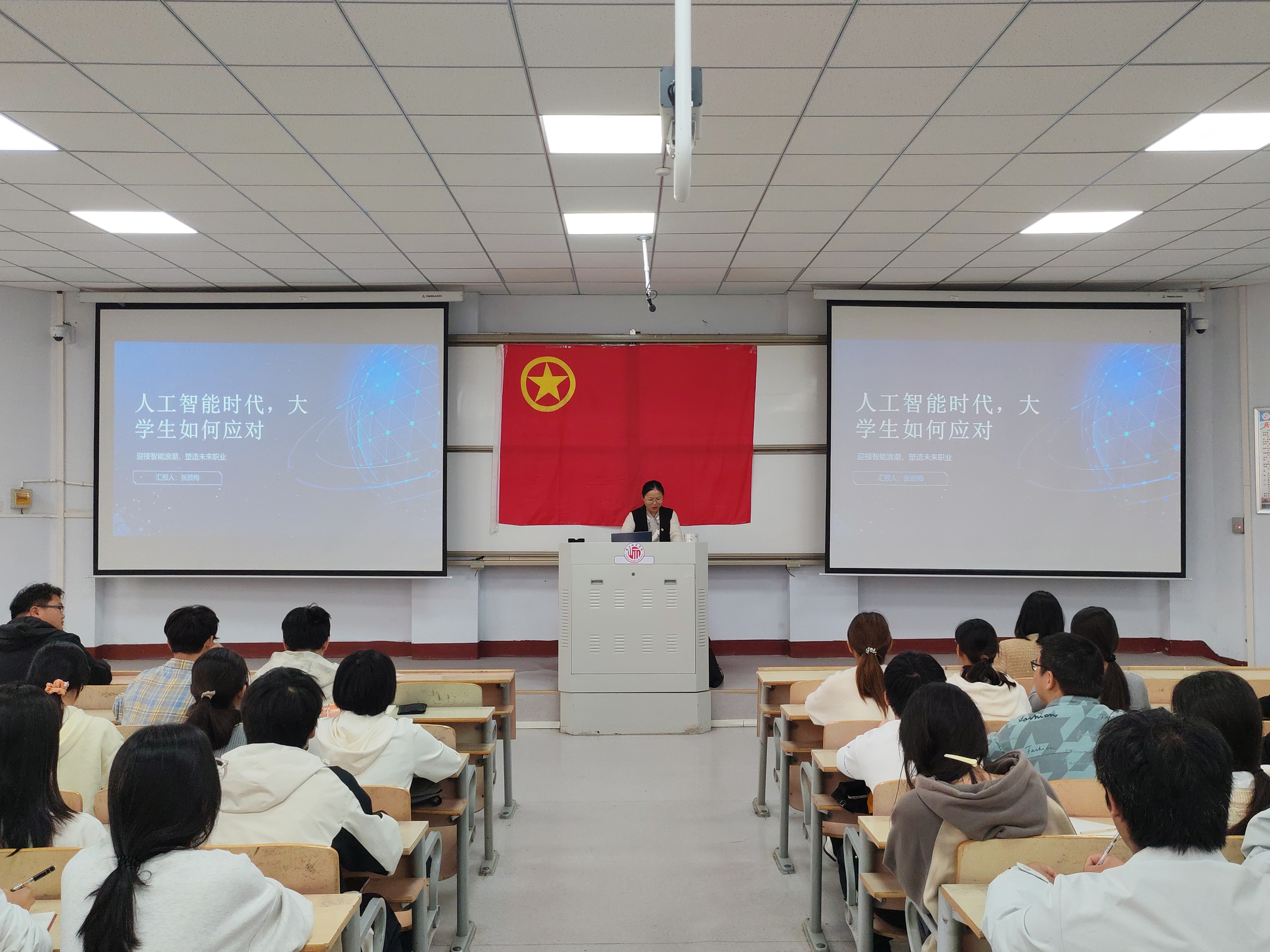 张颜梅老师详细讲述了人工智能的定义与发展历程,并鼓励每位团员在自己所学专业领域内深入钻研,掌握核心概念、理论和技能,形成自己的专业优势。同时,关注专业领域的前沿研究和发展动态,不断更新自己的知识体系。积极参加创新创业大赛或团内组织的创新活动,思考如何将人工智能技术应用于改善社会、服务群众等实际场景,发挥共青团员的创新精神。