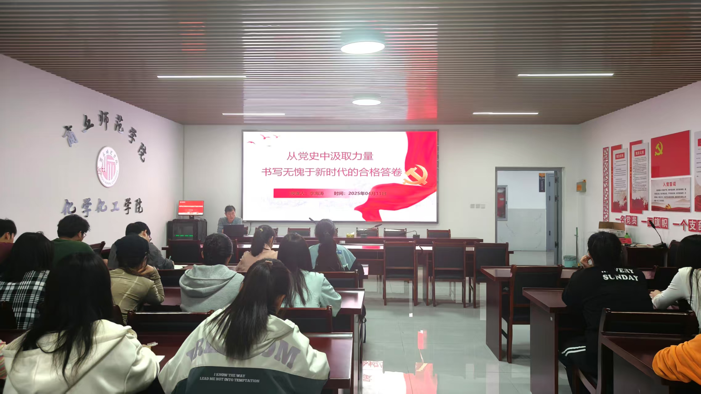 为持续强化入党积极分子的思想政治根基,坚定理想信念,校准入党初心,强化使命担当,4月11日,化学化工学院分党校于工科实训大楼B309会议室开展入党积极分子第三次党课学习。本次党课由院党委书记李海涛主讲,全体入党积极分子参加学习。