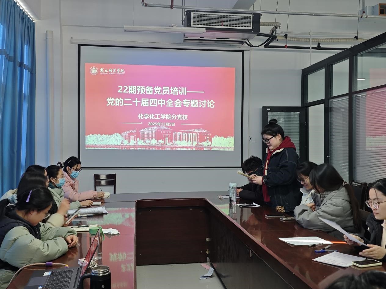 为深入学习党的二十届四中全会精神,推动理论学习从“课堂学”向“实践悟”延伸,12月5日下午,化学化工学院第22期预备党员在学院实训楼B308会议室开展集中学习研讨活动,将党课学习的思想热度转化为对时政精神的深度思考。