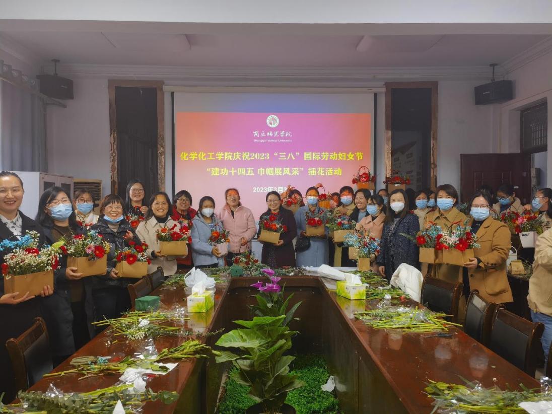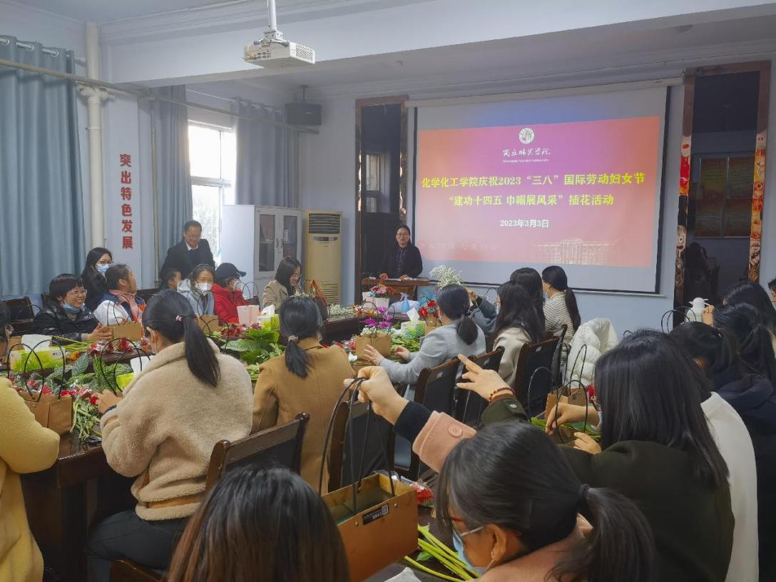 为庆祝“三八”国际劳动妇女节,丰富广大女职工的文化生活,3月3日下午化学化工学院工会举行“建功十四五巾帼展风采”三八妇女节主题插花活动。会议由院党委副书记张颜梅主持,副院长王涛及全体女教工出席活动。