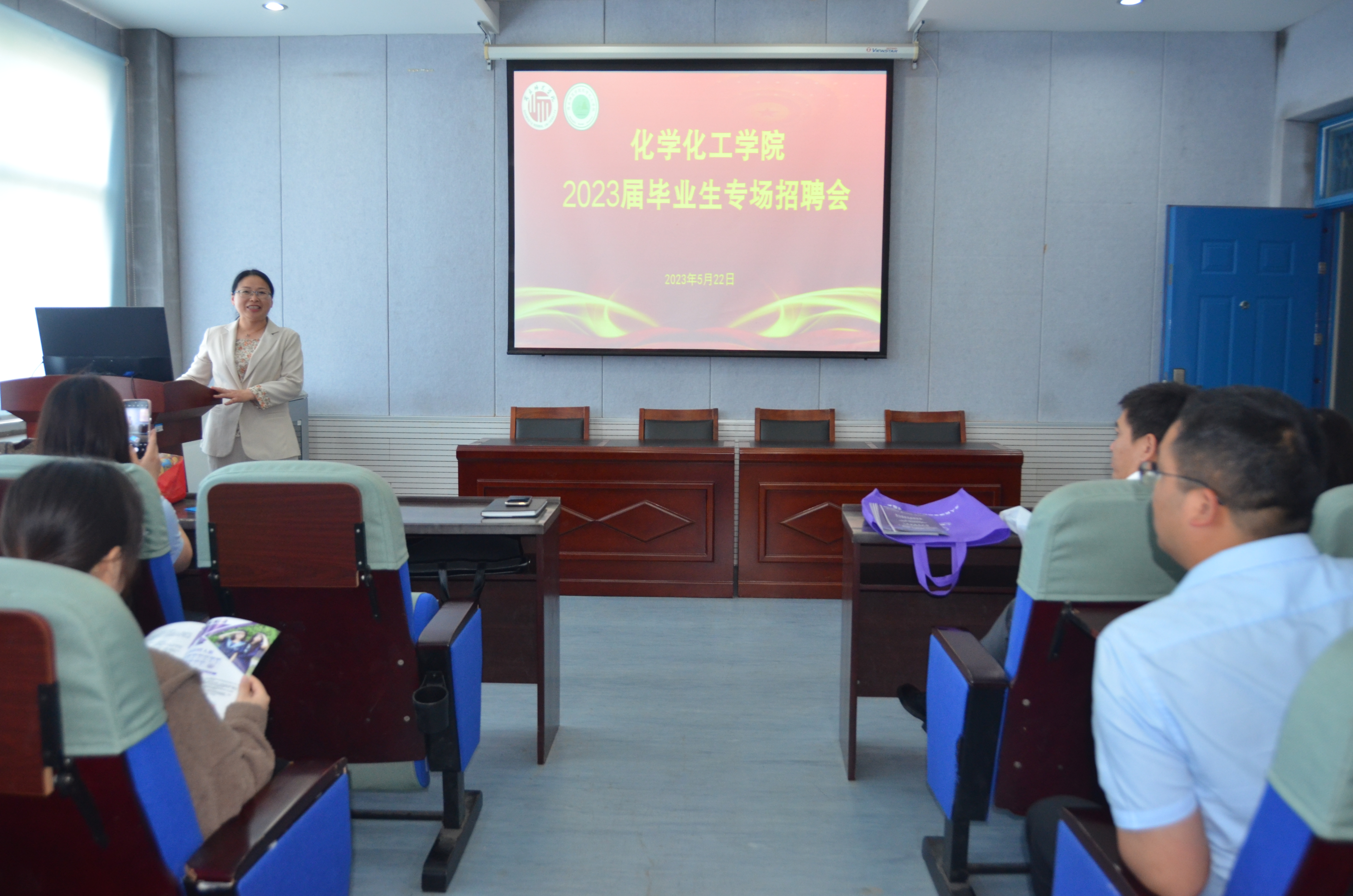 为切实做好2023届毕业生就业工作,努力拓宽就业渠道,助力高质量就业,解决困扰学生的就业难题,5月22日下午,永利23411集团于化学实验楼311报告厅举办2023届毕业生专场招聘会。院长张银堂、党委副书记张颜梅、副院长王涛出席本次招聘会,会议由张颜梅主持。