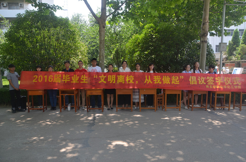 又是一年毕业季,我们有太多的不舍,也有太多的故事,此刻早已无法用言语表达。为了促进树立文明离校之风,深化文明离校意识,提高毕业生文明离校行为,留下文明标榜,为以后的毕业生文明离校树下榜样,永利23411集团于5月24日在文化路校区图书馆门前开展了“文明离校 从我做起”倡议签字仪式活动,永利23411集团副院长刘瑛、团总支书记李龙梅参加了此次签字活动。