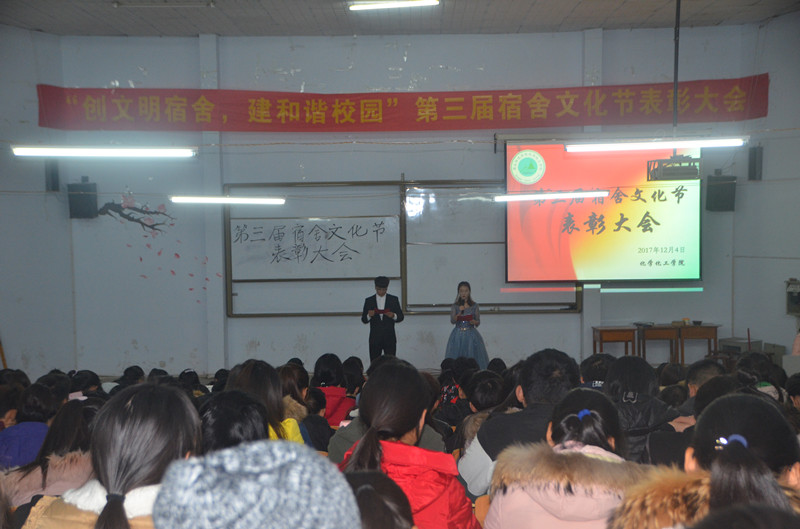 为展示宿舍文化节成果,表彰本学期表现优秀的宿舍,号召同学们积极参与宿舍文化节相关活动,弘扬优良宿舍文化,12月4日晚,化学化工学院在校文化路校区文工团举行以“创文明宿舍,建和谐校园”为主题的第三届宿舍文化节表彰大会。化学化工学院党总支副书记刘瑛、团总支书记李龙梅、团总支·学生会全体成员与近300名学生参加了此次大会。