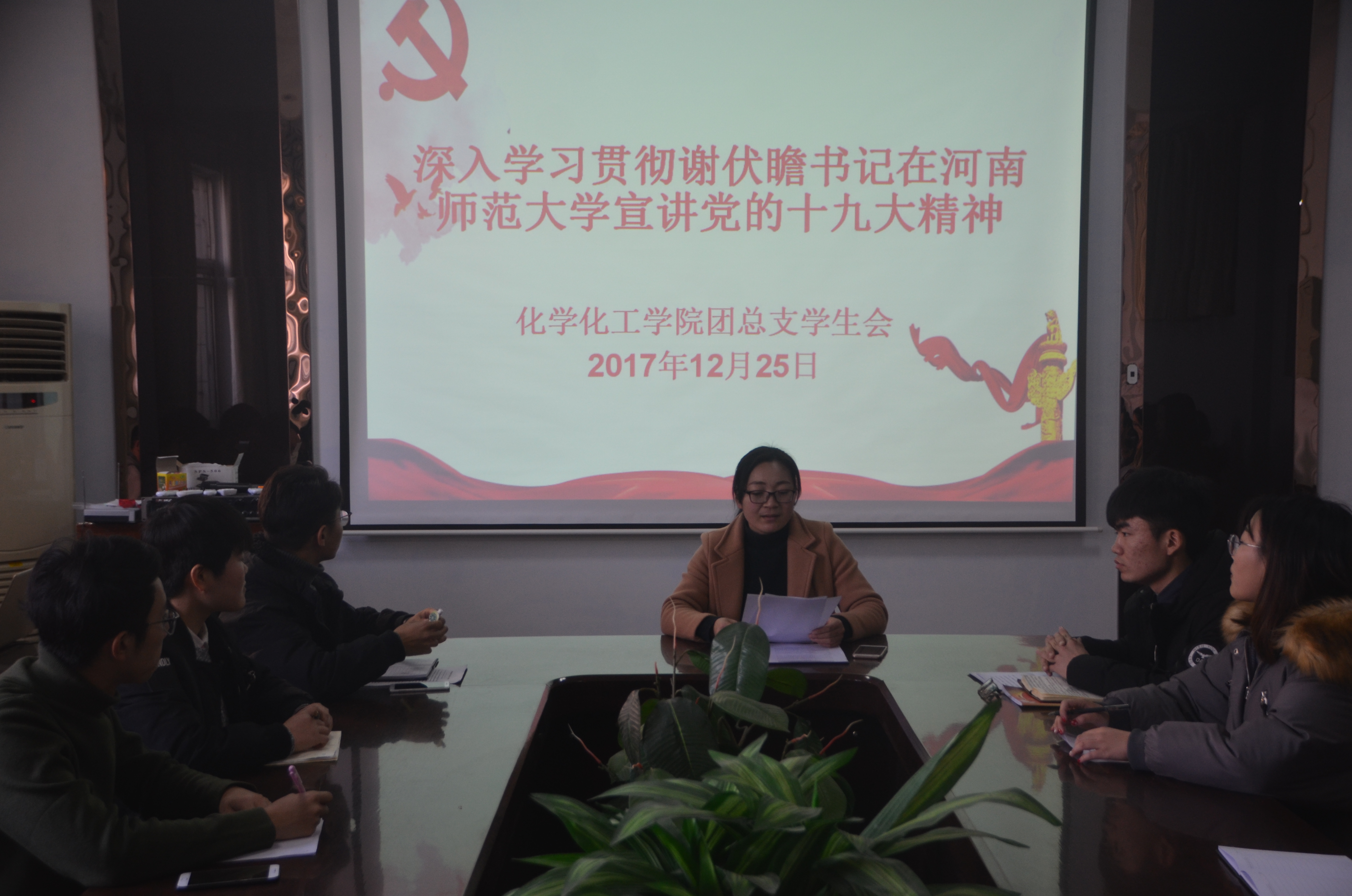12月25日中午12:40,永利23411集团于我校文化路校区7号楼院会议室召开以“贯彻谢伏瞻书记在河南师范大学讲话精神”为主题的学习会。会议由永利23411集团团总支书记李龙梅主持,全体团总支学生会成员参与。