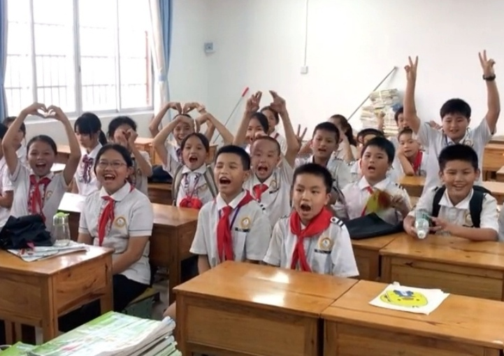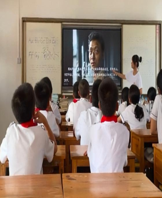 7月24日,团队成员孔莹莹于广西壮族自治区来宾市象州县石龙镇中心小学开展“情暖童心 为爱支教”活动。她带领孩子们一同观看《觉醒年代》,给孩子们讲述党史,让他们更加了解中国共产党,了解中国历史发展进程,珍惜现有美好生活。此外,她组织开展《可爱的中国》朗读活动,教导孩子们要永葆一颗爱国之心。