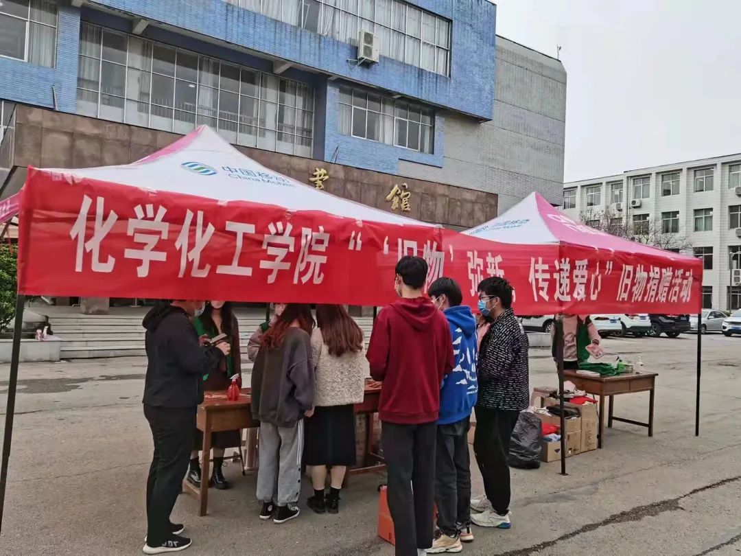 为了进一步激发当代大学生学雷锋、做先锋的热情,3月24日至27日,化学化工学院团委学生会在睢阳校区图书馆门口开展“‘旧物’弥新,传递爱心”旧物捐赠活动。活动由生活部、组织部成员联合举办,全体学生党员参与。