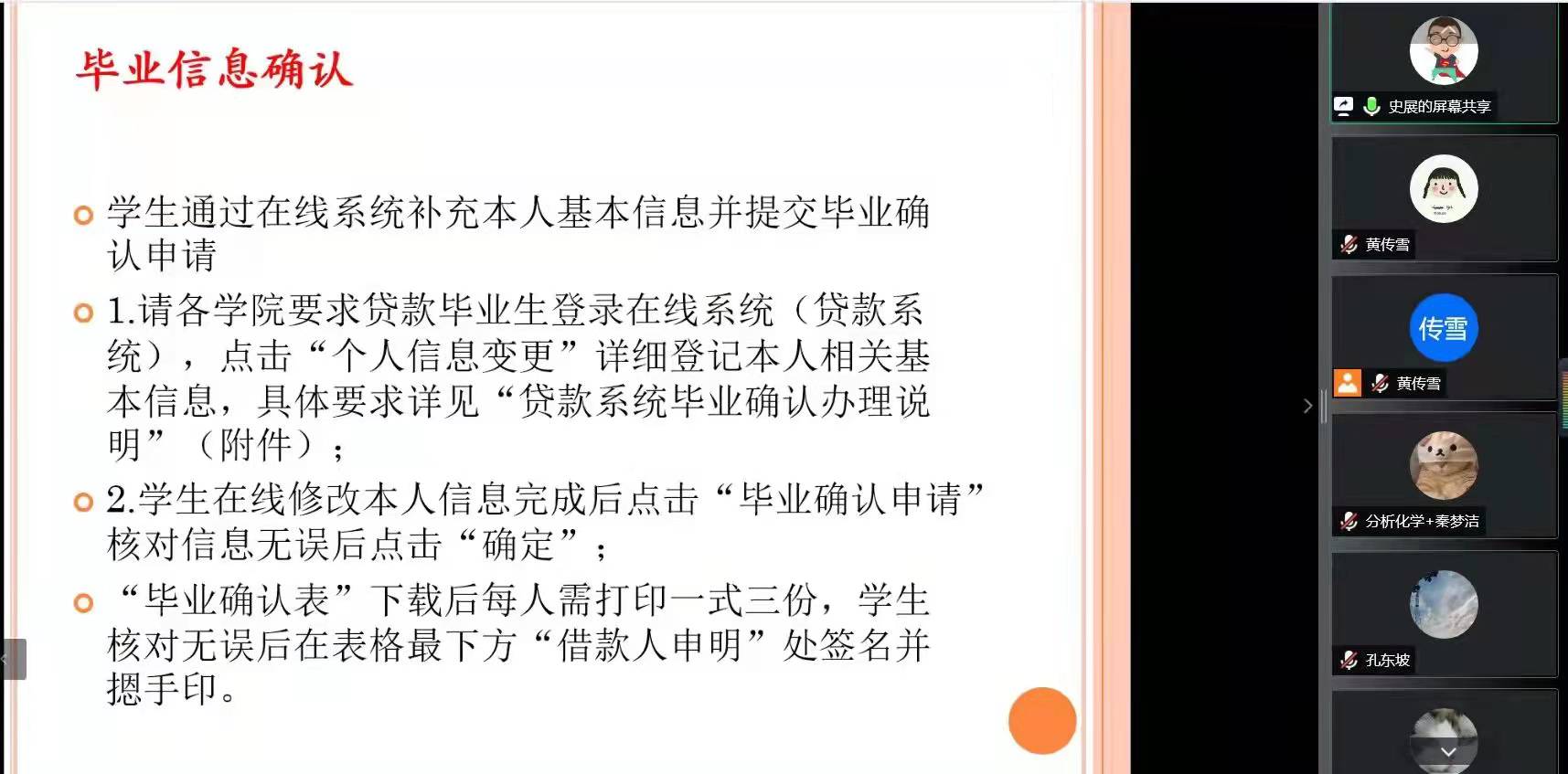 为帮助贷款毕业生了解还款流程,加强贷款毕业生毕业后管理工作,2022年4月16日,化学化工学院利用腾讯会议召开2022届毕业生还款教育会议。会议由学院资助工作负责人史展老师主持,全体2022届贷款毕业生参加。