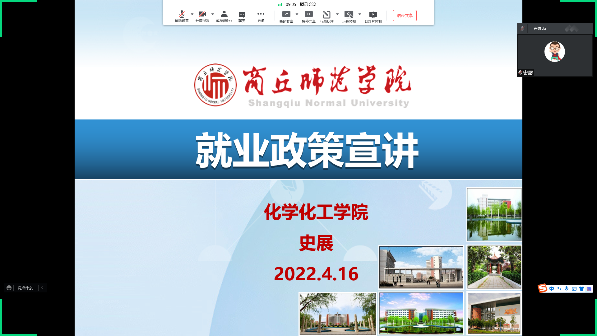 为加强永利23411集团学生对当前就业政策的了解,明确就业目标,提高就业竞争力,永利23411集团于4月16日利用腾讯会议召开了就业政策宣讲会,毕业班辅导员史展主讲,2018级全体学生参加。
