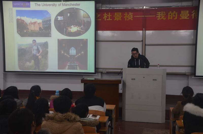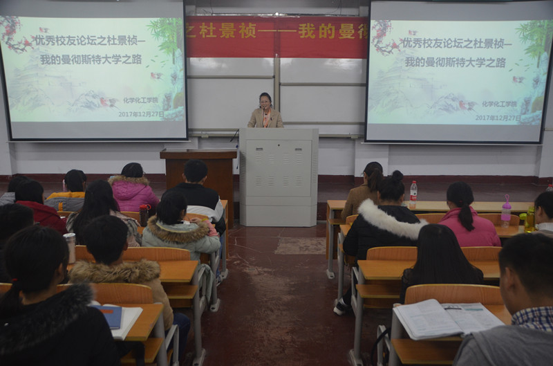 为进一步加强创新创业教育工作,激励广大在校学生努力学习,立志成才。12月27日晚,化学化工学院于文化路校区1#106教室举办优秀校友论坛讲座,特邀永利23411集团2013届优秀校友杜景祯同学给我们分享他的曼彻斯特大学之路,党总支副书记刘瑛、17级辅导员郭家瑞以及永利23411集团2017届全体新生参加了论坛。论坛由院党总支副书记刘瑛主持。