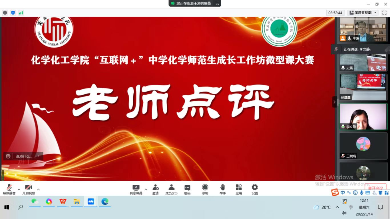 为了进一步提升师范生教育教学能力,强化师范生对课堂教学的把控能力,5月14日,永利23411集团“互联网+”中学化学师范生成长工作坊微型课大赛在睢阳校区1#503教室通过腾讯会议线上线下同时进行。本次微型课大赛评委老师由校外14位工作坊坊主、永利23411集团7位专业老师组成,全体工作坊学员线上参与观摩,大赛由副院长王涛主持。