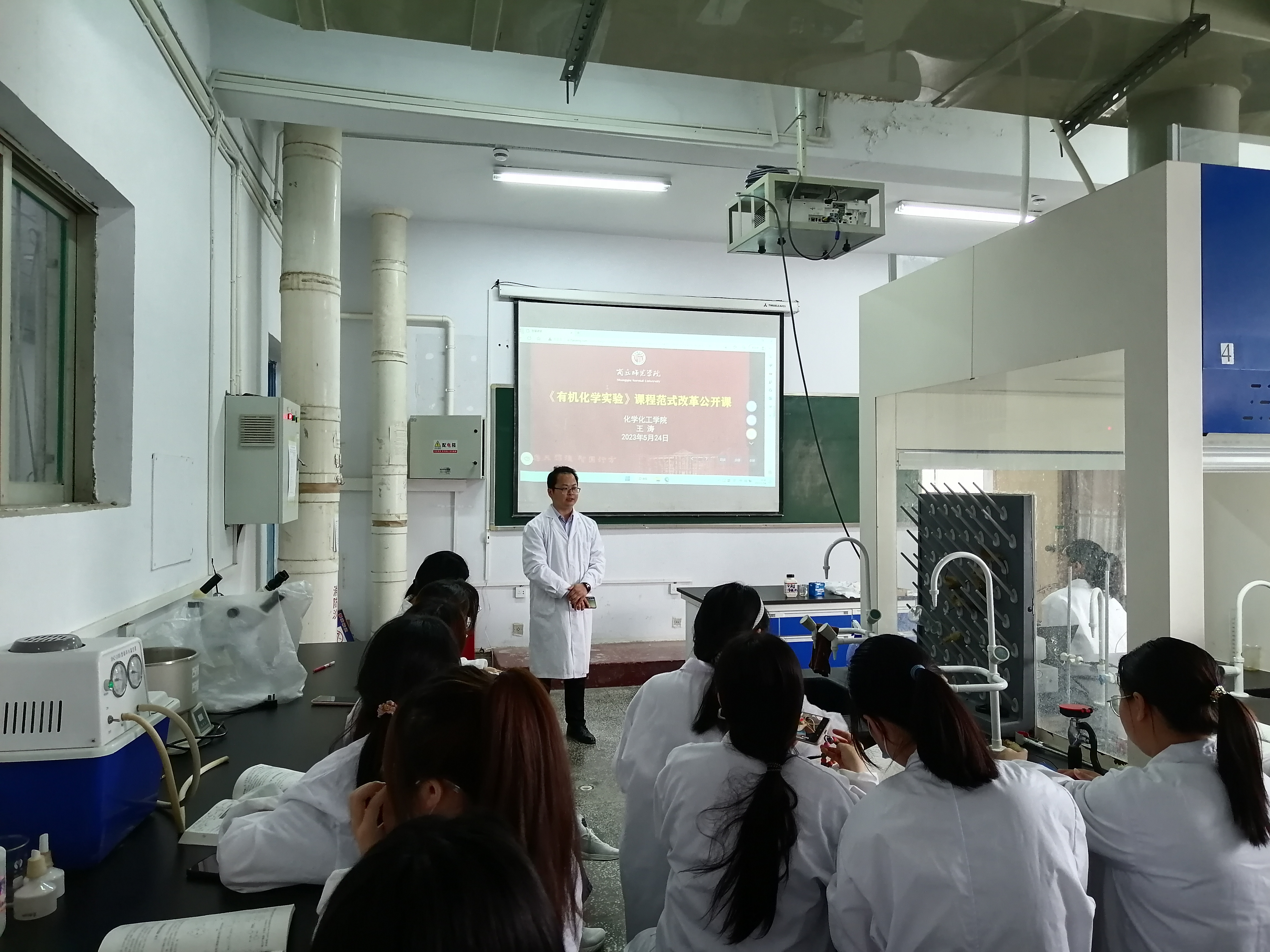 5月24日周三下午第5节课,化学化工学院王涛老师负责的《有机化学实验》课程教学范式改革公开课在睢阳校区化学实验楼407实验室举行,制药工程系副主任张明亮、学院督导团成员臧运波以及近三年新入职青年教师观摩了此次公开课。