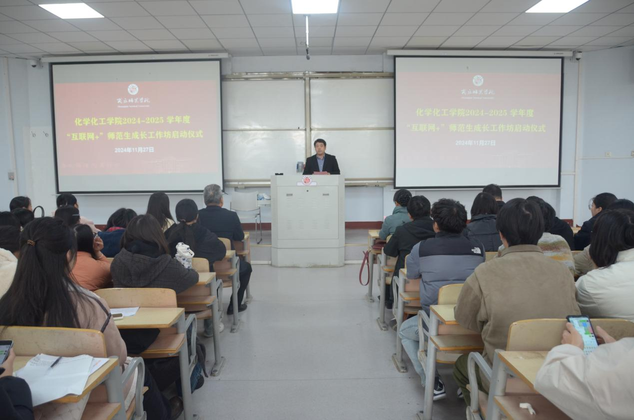 在第一阶段,院长周艳丽致辞,对各位工作坊坊主的长期付出表示感谢,要求同学们要珍惜这次难得的求学机会,按时完成坊主老师布置的各项学习任务等。副院长王涛宣读了《2024-2025学年“互联网+”中学化学师范生成长工作坊工作实施方案》。