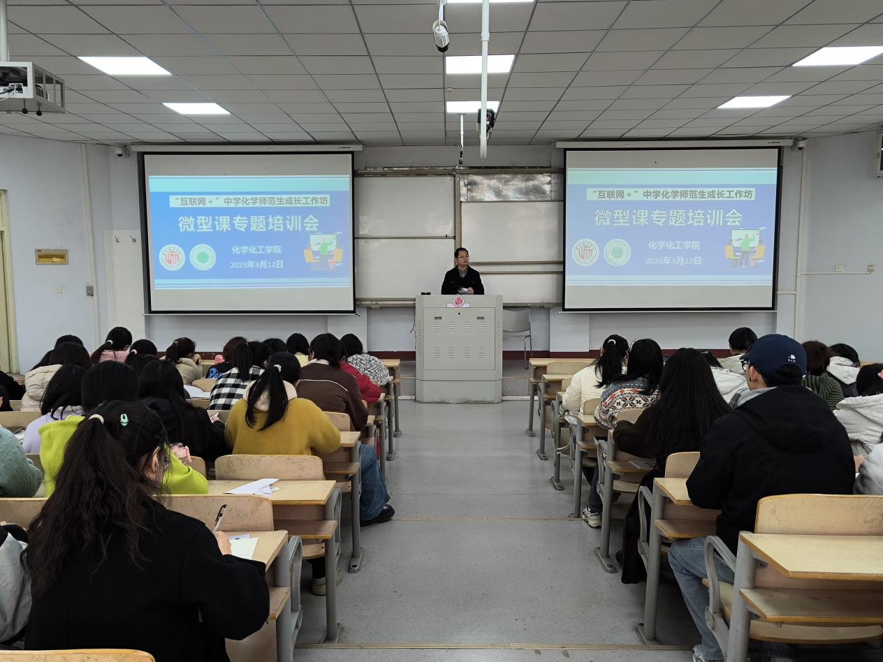 为稳步推进“互联网+”中学化学师范生成长工作坊的系列主题活动,化学化工学院于3月12日在睢阳校区1#106教室成功举办微型课集体培训活动。此次活动邀请了商丘市高级中学的祖晓静老师担任主讲嘉宾,2022级全体师范生参与,活动由副院长王涛主持。